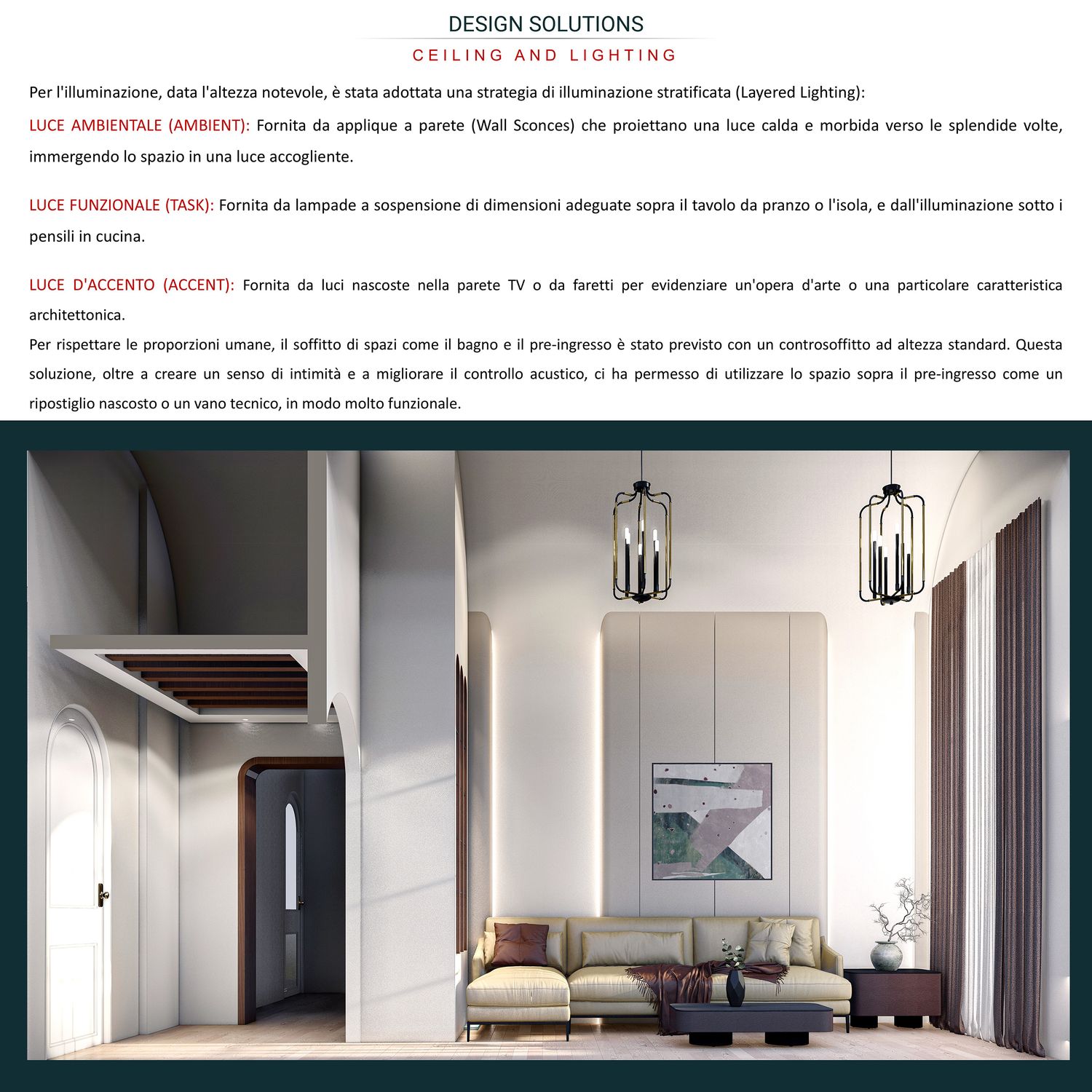 Prima di tutto, desideriamo ringraziarLa sinceramente per averci dato l'opportunità e la fiducia di partecipare al concorso per la progettazione di questo appartamento unico. Collaborare a un progetto con un tale carattere storico e un così alto potenziale è per il nostro team un'esperienza di grande valore ed entusiasmo.