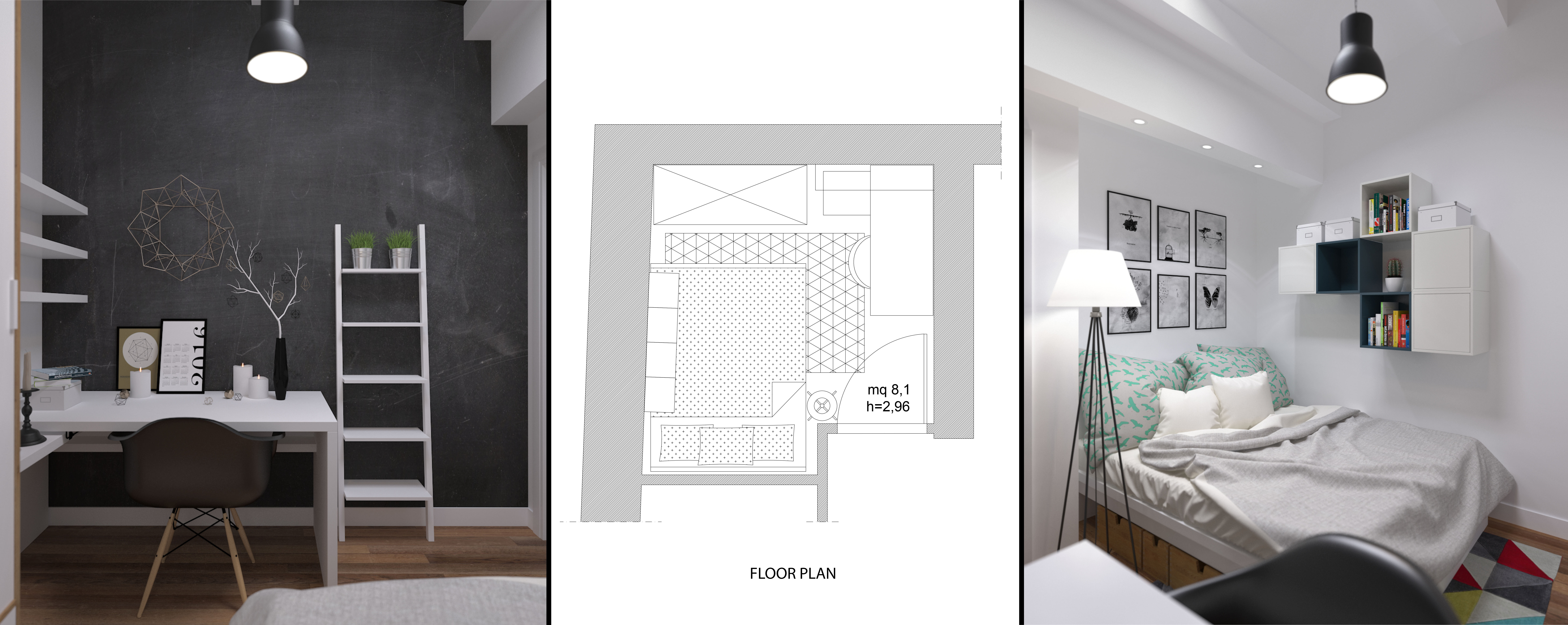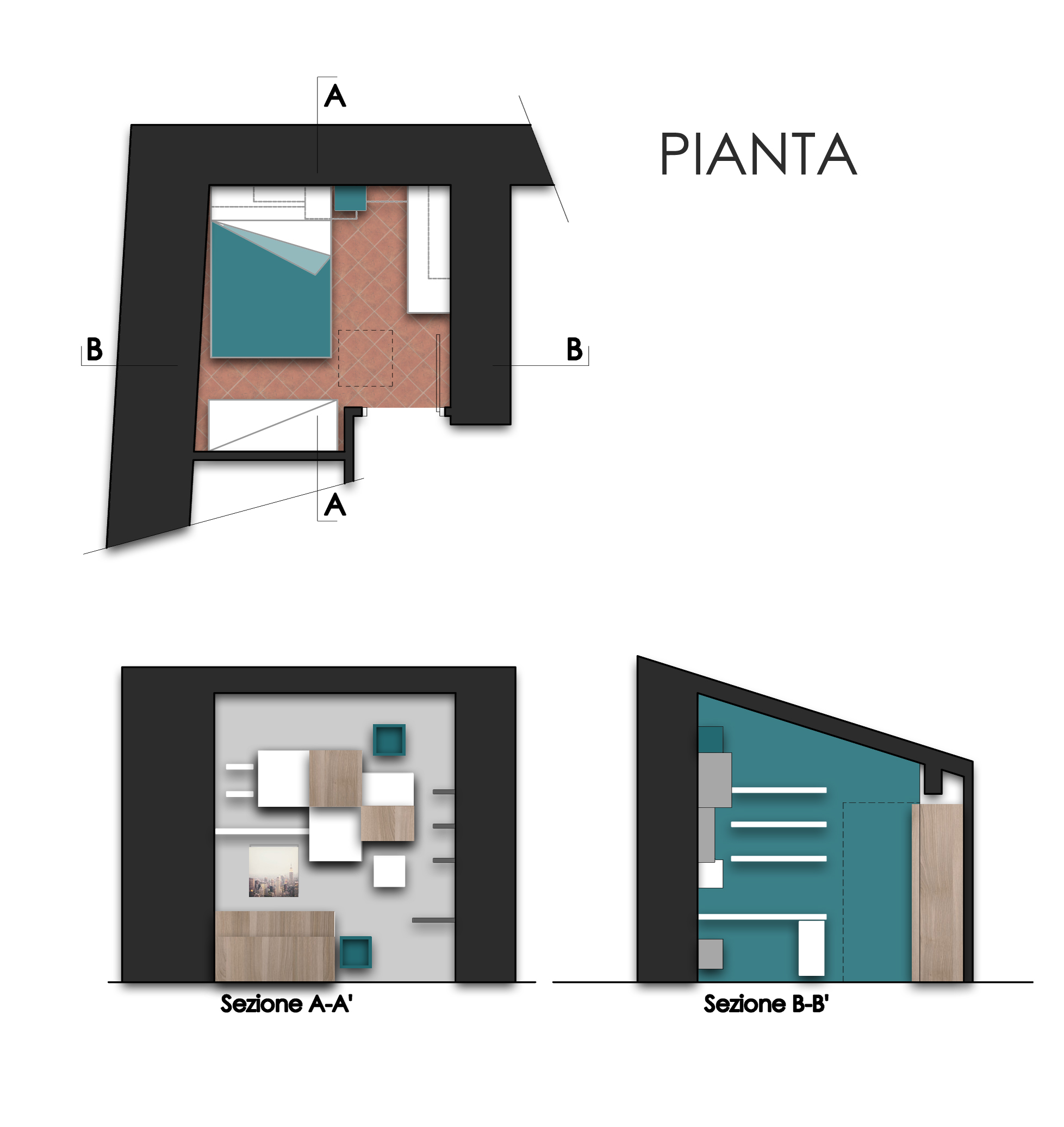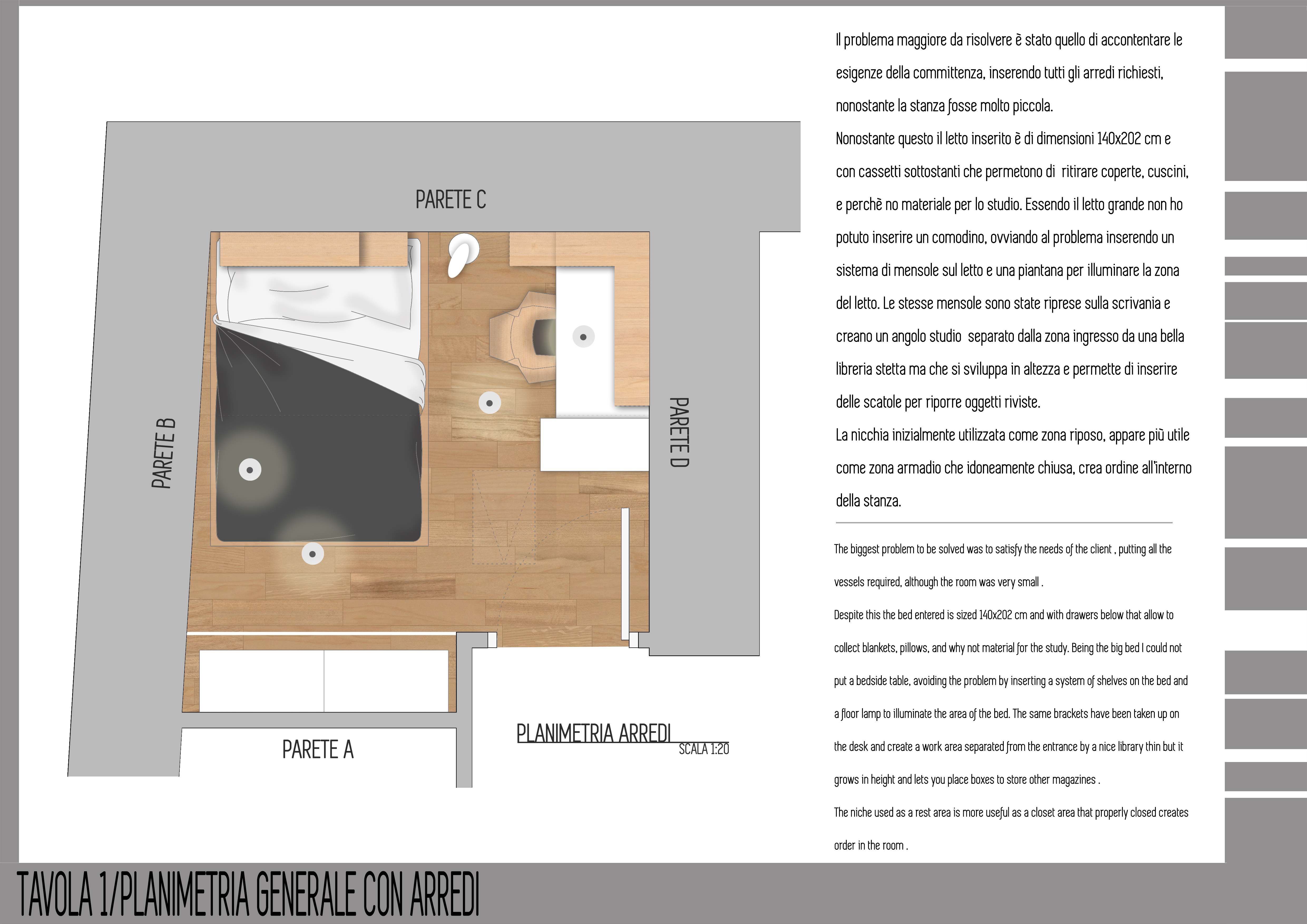 Salve. La richiesta che vi faccio riguarda la progettazione dell’arredo della camera , utilizzata da mio figlio di 20 anni, studente universitario. L’arredo attuale, anche se piuttosto nuovo, è poco funzionale e un po’ opprimente.