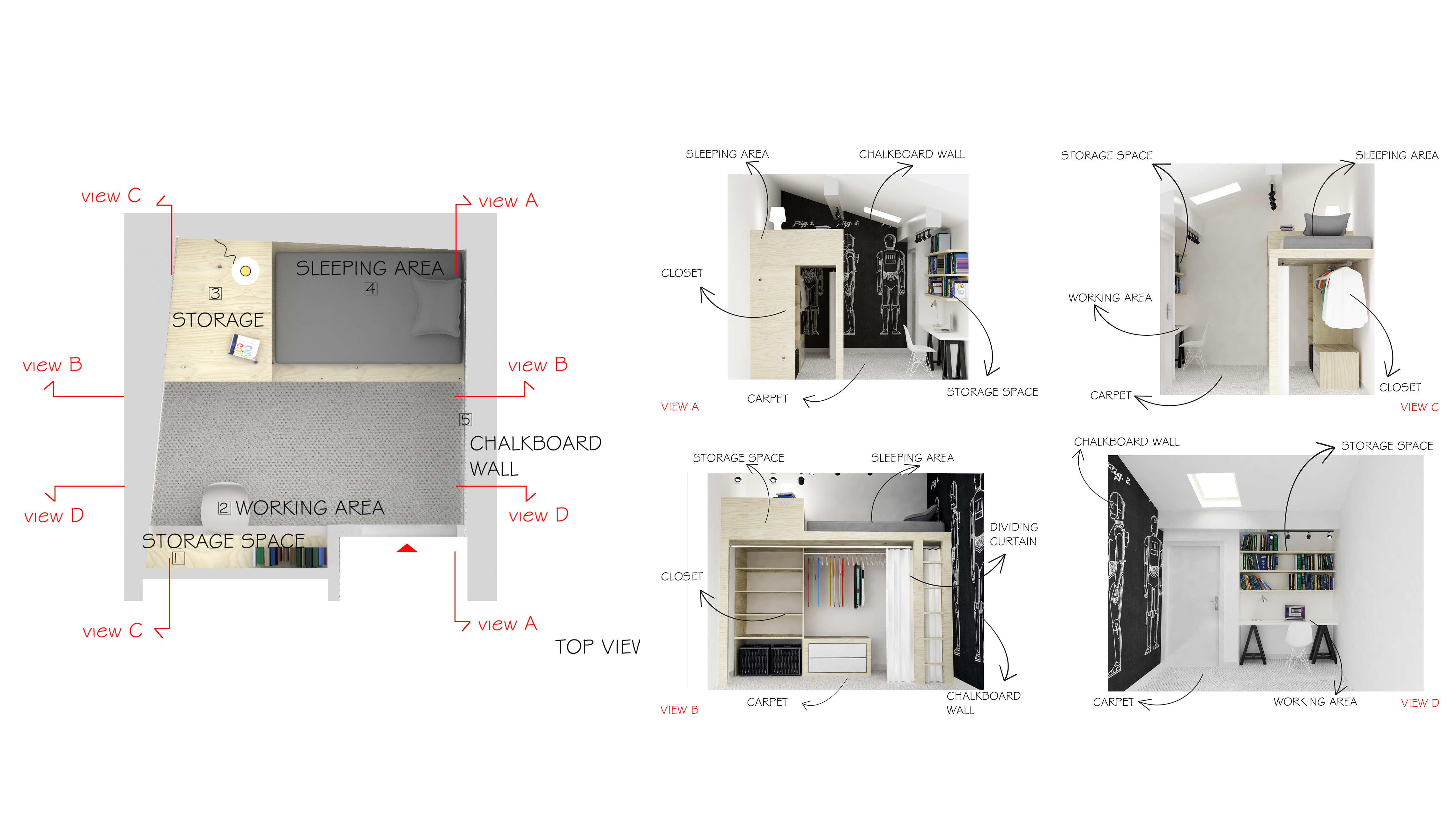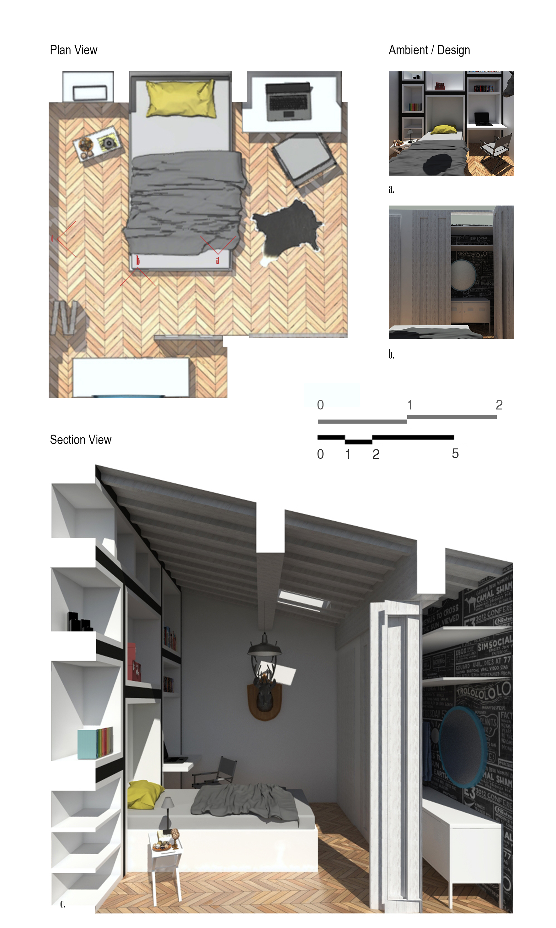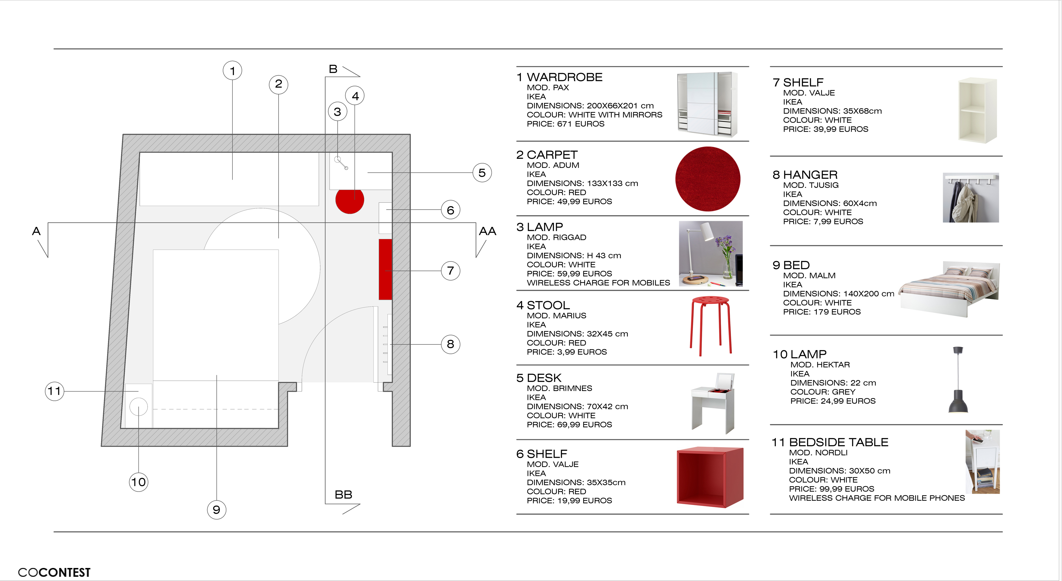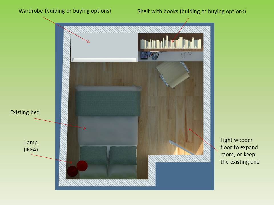 Salve. La richiesta che vi faccio riguarda la progettazione dell’arredo della camera , utilizzata da mio figlio di 20 anni, studente universitario. L’arredo attuale, anche se piuttosto nuovo, è poco funzionale e un po’ opprimente.