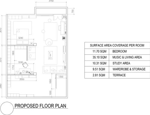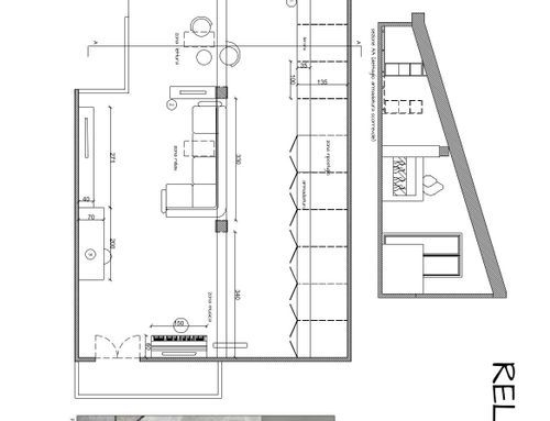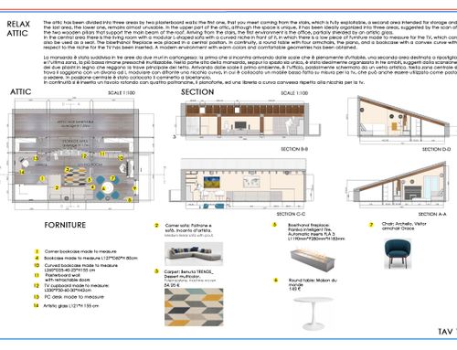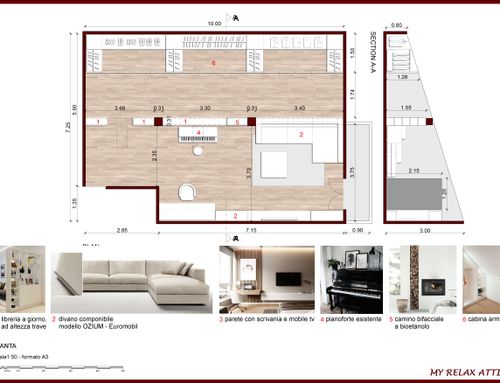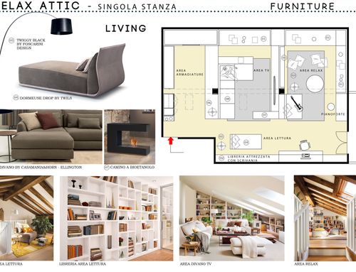 This space will become a living room with study in modern style. We would like an "L" or peninsula sofa, a TV cabinet, a bookcase and a study table with pc. We also have a black wall piano and a guitar that we would like to place in this room. We would like to understand how to make the most of the lower part (wardrobes?) And how to create light points in addition to the two skylights, the terrace door and the 4 wall points already present (see photo). We would also like to add a small bioethanol fireplace to give warmth to the environment.