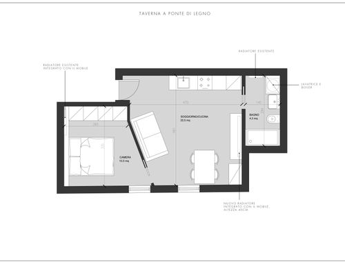 Ci sono due caloriferi molto grandi all'interno dell'ambiente che ora è unico e vorrei dividere. I caloriferi preferirei non toccarli e mascherarli, ma quello verso il bagno vorrei cambiarlo se non è possibile mascherarlo perchè è nella posizione che vorrei usare come "parete TV ".