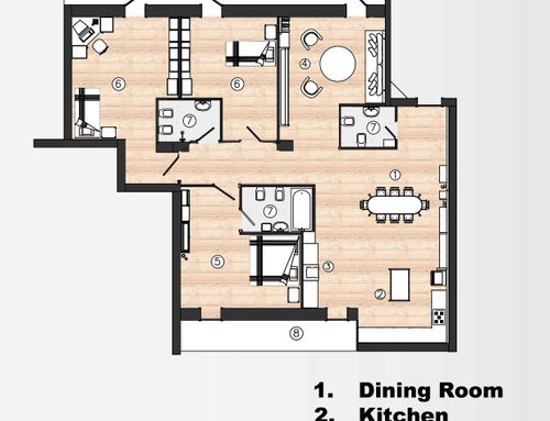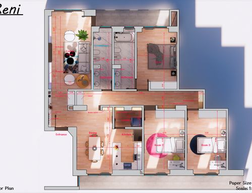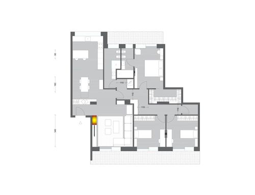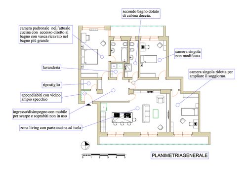 To realize: master bedroom with direct access bathroom, two children's bedrooms, two bathrooms both with bidet, laundry room with washing machine space only, closet, entrance with space for shoe cabinet and clothes hanger, living kitchen with island.