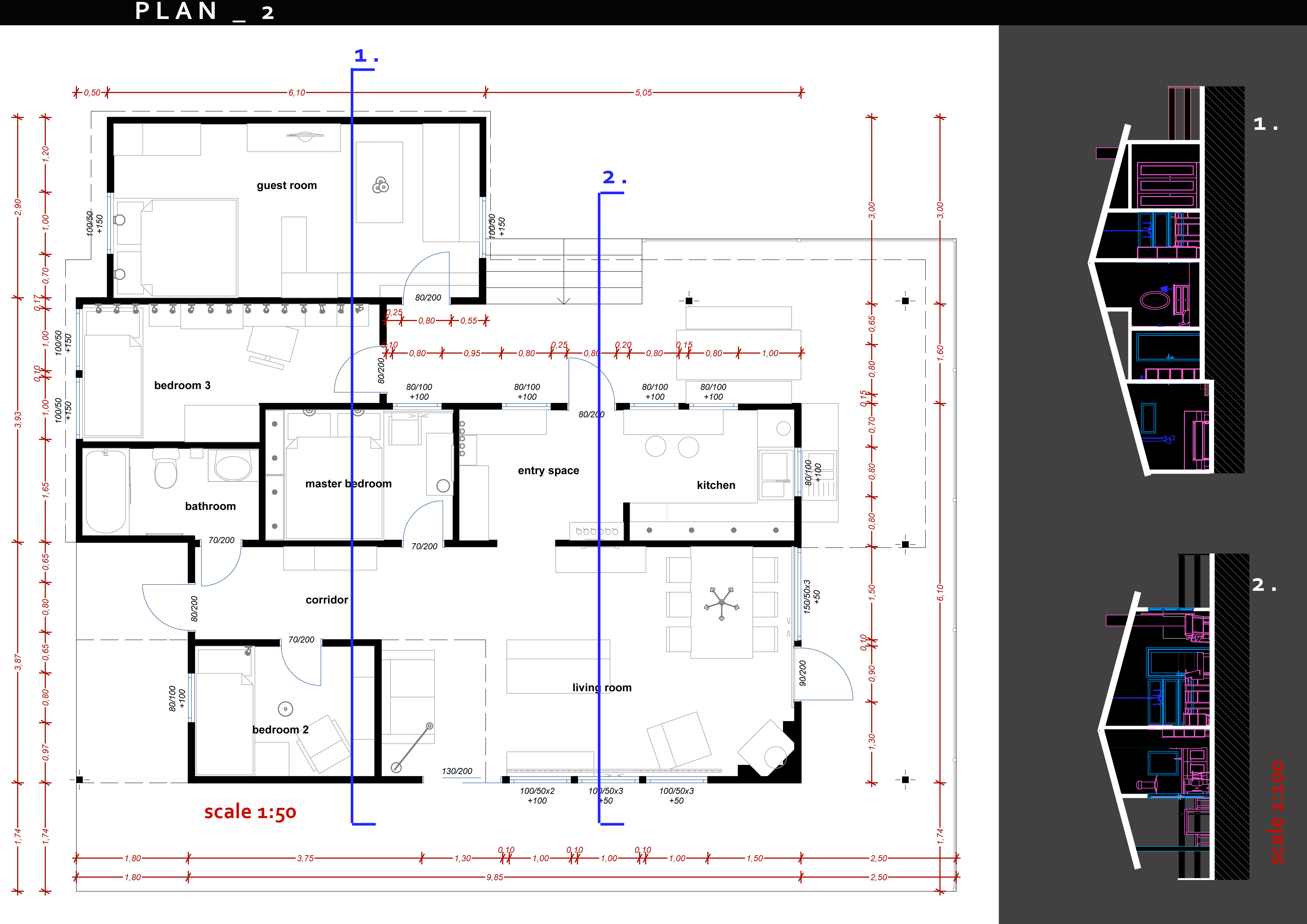 1.a Move "kitchen" to bedroom "Sleep 1", remove wall between these two