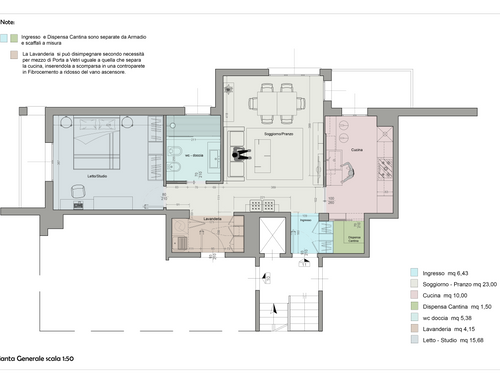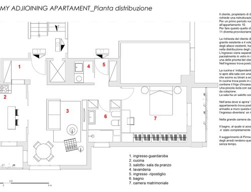 La proprietà necessita di una ristrutturazione totale, escluso il pavimento in granito. Essendo un appartamento contiguo al mio, i due immobili si fonderanno mantenendo comunque la loro indipendenza ( ognuno con i propri impianti). Il progetto non deve stancare negli anni, dovrà ridistribuire in maniera moderna, essenziale e funzionale lo spazio ( la superficie lorda è di 78mq). Si dovrà tener conto di organizzare una zona lavanderia, un ripostiglio, un armadio a muro contenitivo, una cucina ben organizzata (cucina separata dalla sala), un salotto accogliente , una camera da letto con angolo studio ( opzionale una cabina armadio) un bagno contemporaneo completo di ogni confort. Tutti gli impianti dovranno essere incassati e di facile manutenzione. Amo la semplicità . Essenziale la luce naturale da poterla sfruttare in ogni stanza a tutte le ore, amo lo stile e i colori andalusi, scandinavi, milanesi, giapponesi.