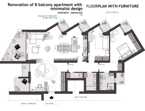The apartment I would like to renovate is on the 10th floor of skyscraper: the result I would like to achieve is a minimalist design in light colors(but not total white) on light wooden floor with some industrial/concrete accent eventually.