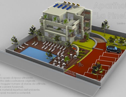 Inoltre vorremmo prevedere 6 posti auto + piscina esterna (rettangolare) con solarium da 20 posti. Abbiamo pensato ad una zona barbeque ad uso comune per tutti coloro che pernotteranno. Il progetto deve essere studiato con intelligenza sia per la parte esterna che per la parte interna poiché siamo tre giovani che non hanno budget per materiali costosi.