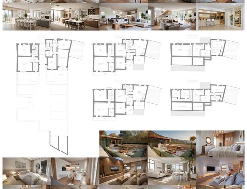 La richiesta di intervento su questo progetto è di rivedere la distribuzione interna con le soluzioni di arredo e dei render per meglio evidenziare la presentazione delle unità abitative.Ho aggiornato il progetto con le nuove tavole con la distribuzione con la distribuzione delle camere nei 5 appartamenti. Sono state caricate nelle planimetrie.
