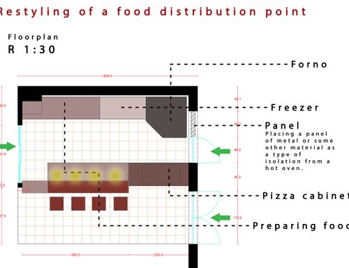 The contest will have to consider the restyling of the layout for the bottom part as well as for the top part of the food distribution point.