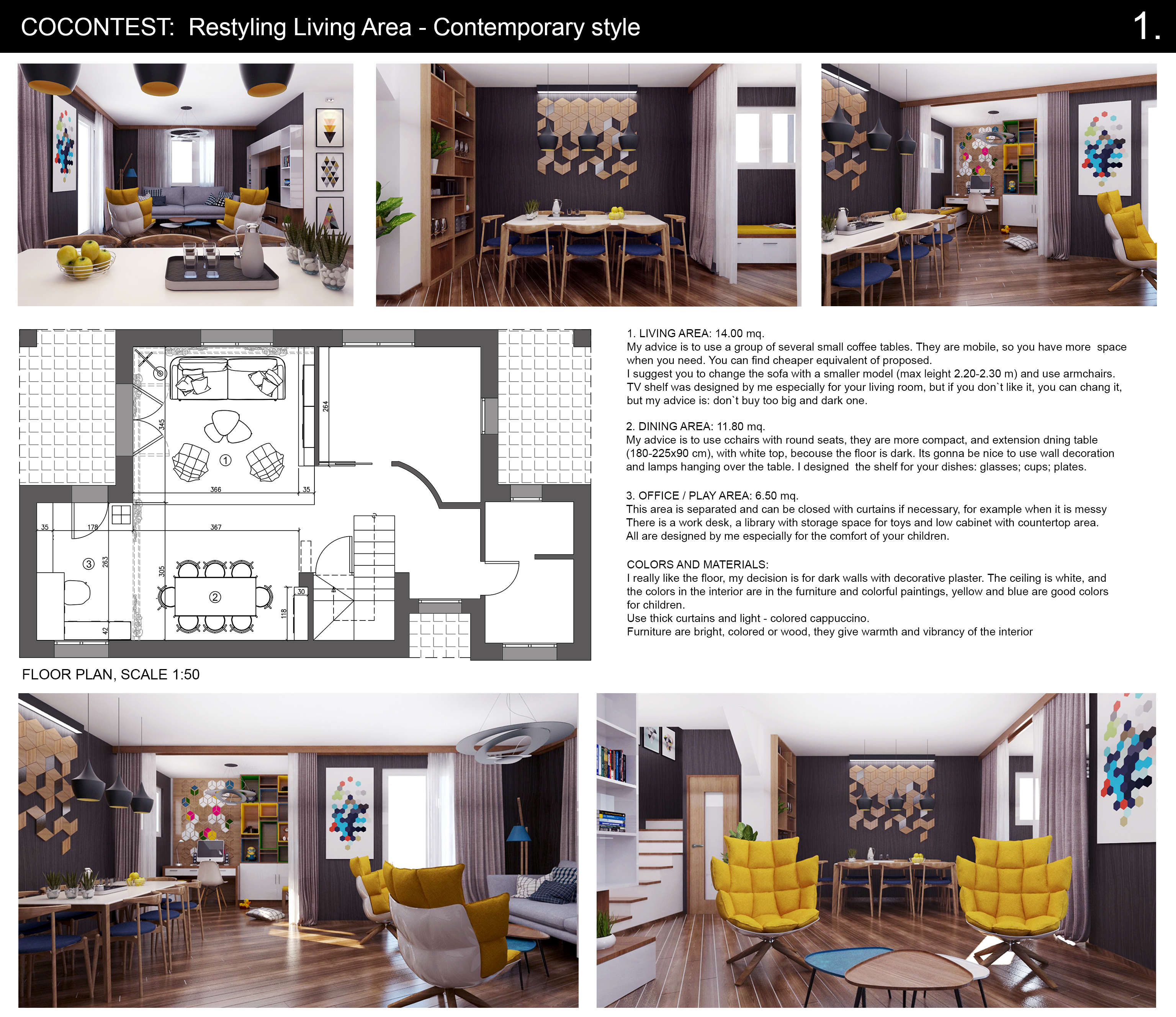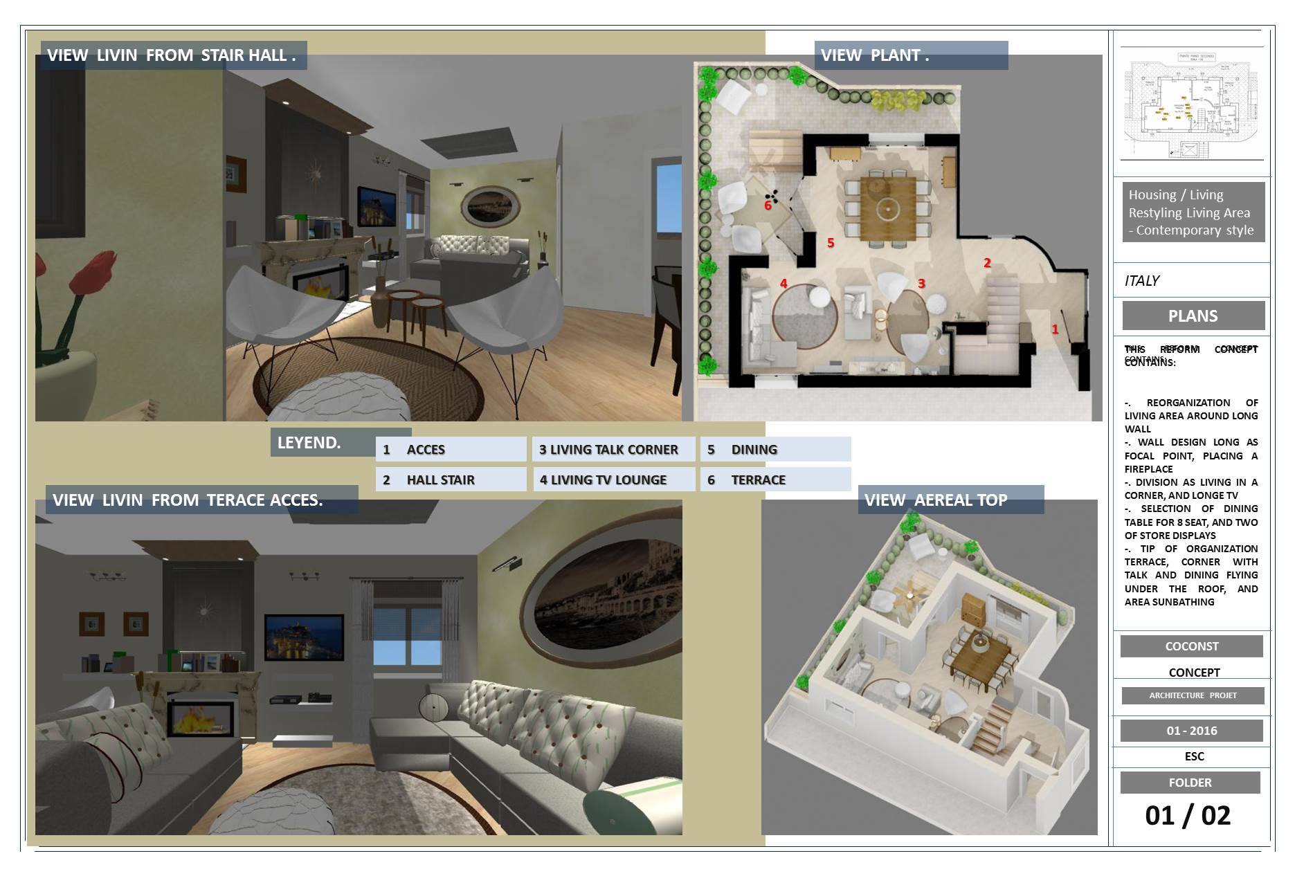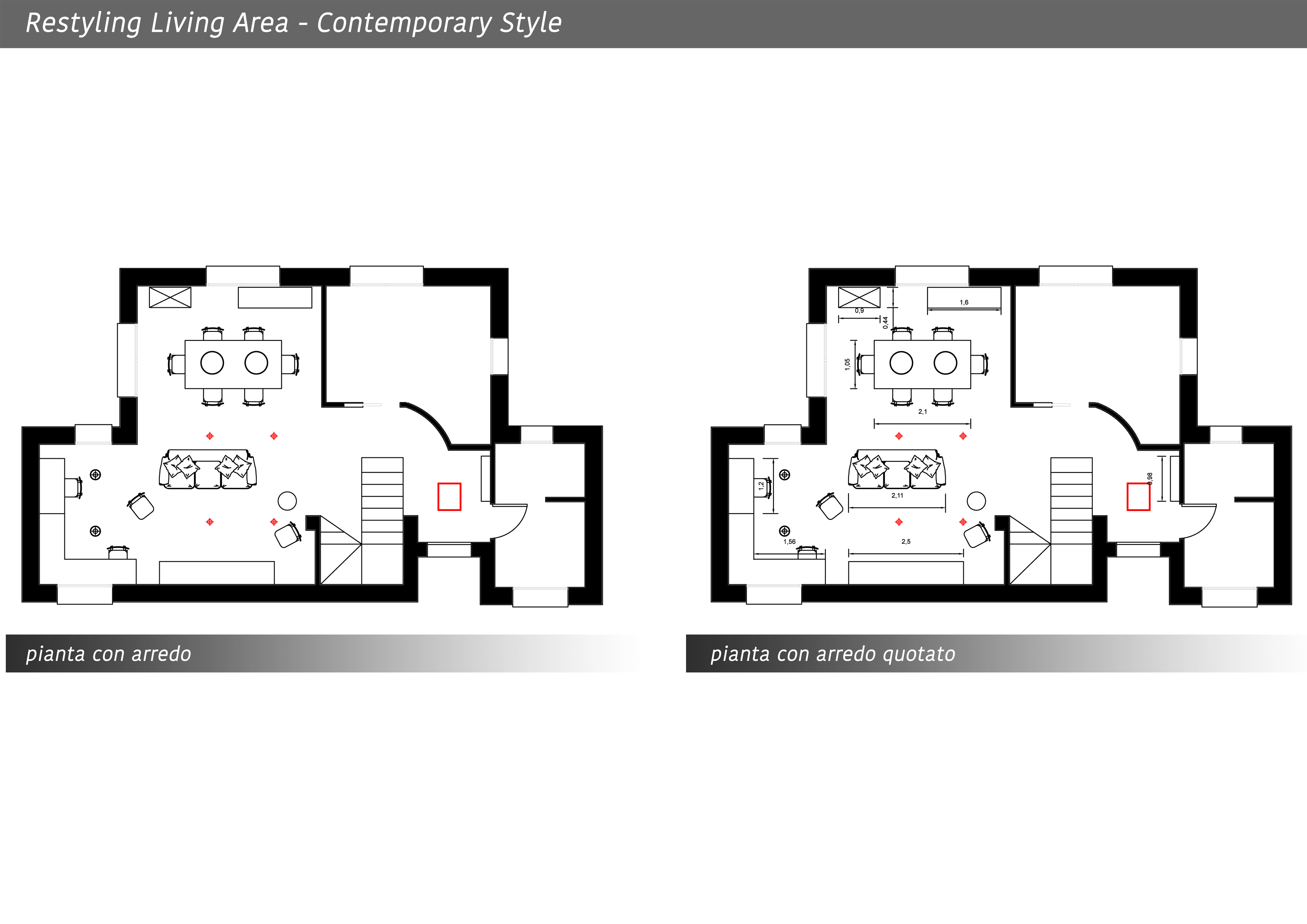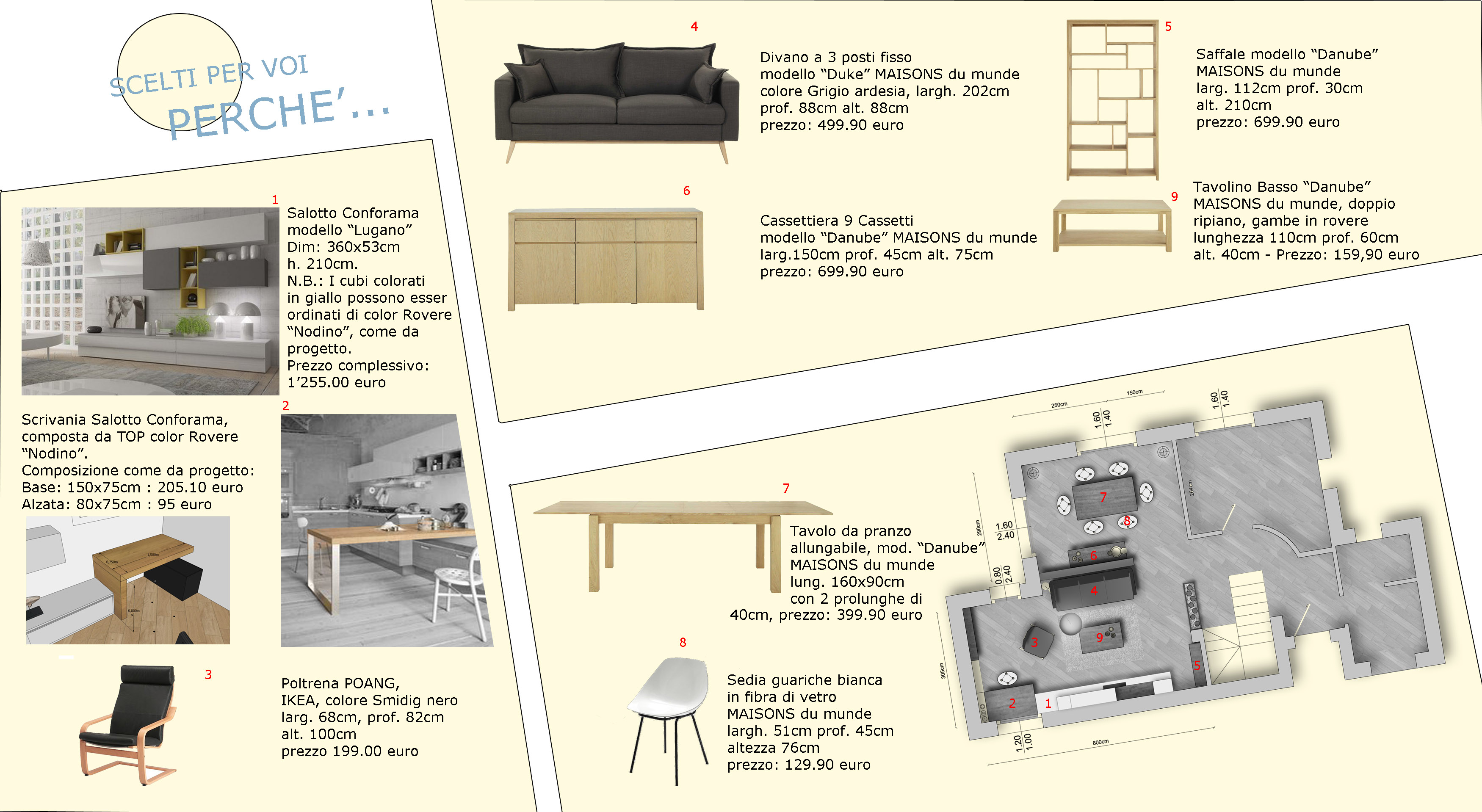 Obiettivo del lavoro e' quello di fare un restyling completo della zona giorno che attualmente usufruisce di pochi spazi di movimento con divano poderoso (Foto 0 e Foto 9) e grande tavolo da pranzo (foto 2 e Foto 3). Vi è la possibilità di utilizzare parte del mobilio esistente (qualora qualcuno ritenesse tale scelta come interessante) così come quella di cambiare completamente l'arredamento.
