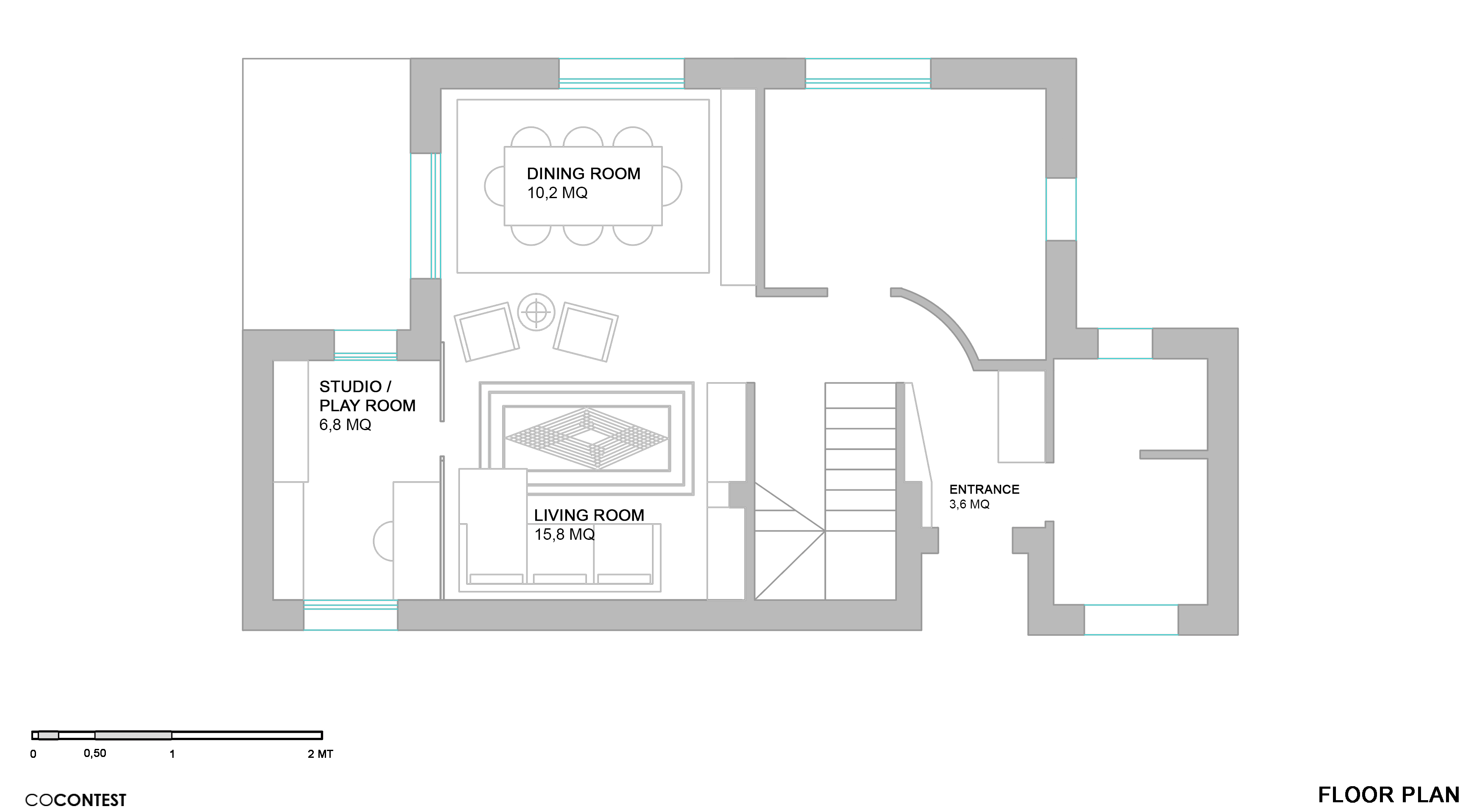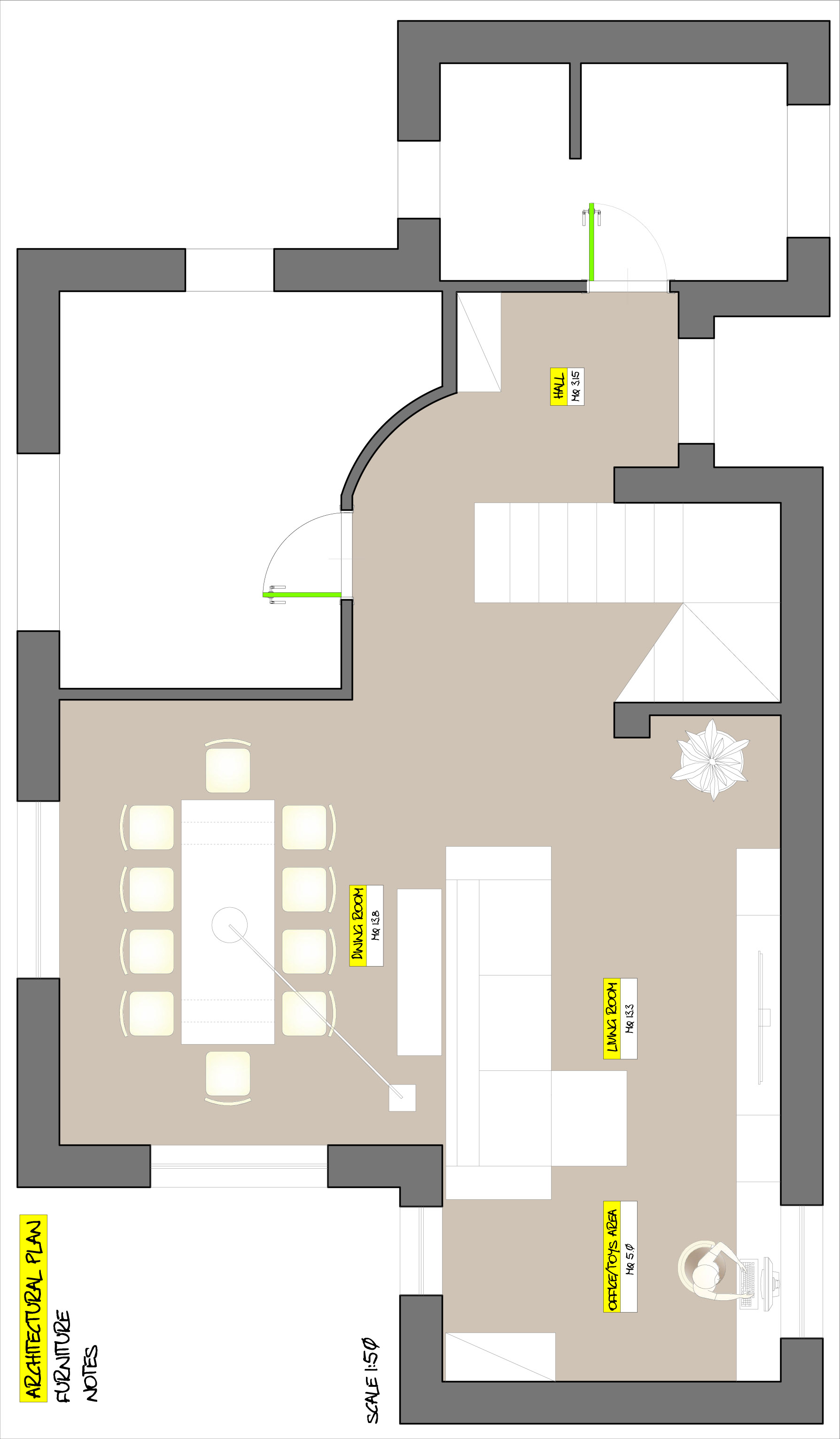 Siete liberi di ridisporre le aree a vostro piacimento (es invertire area pranzo e salotto).