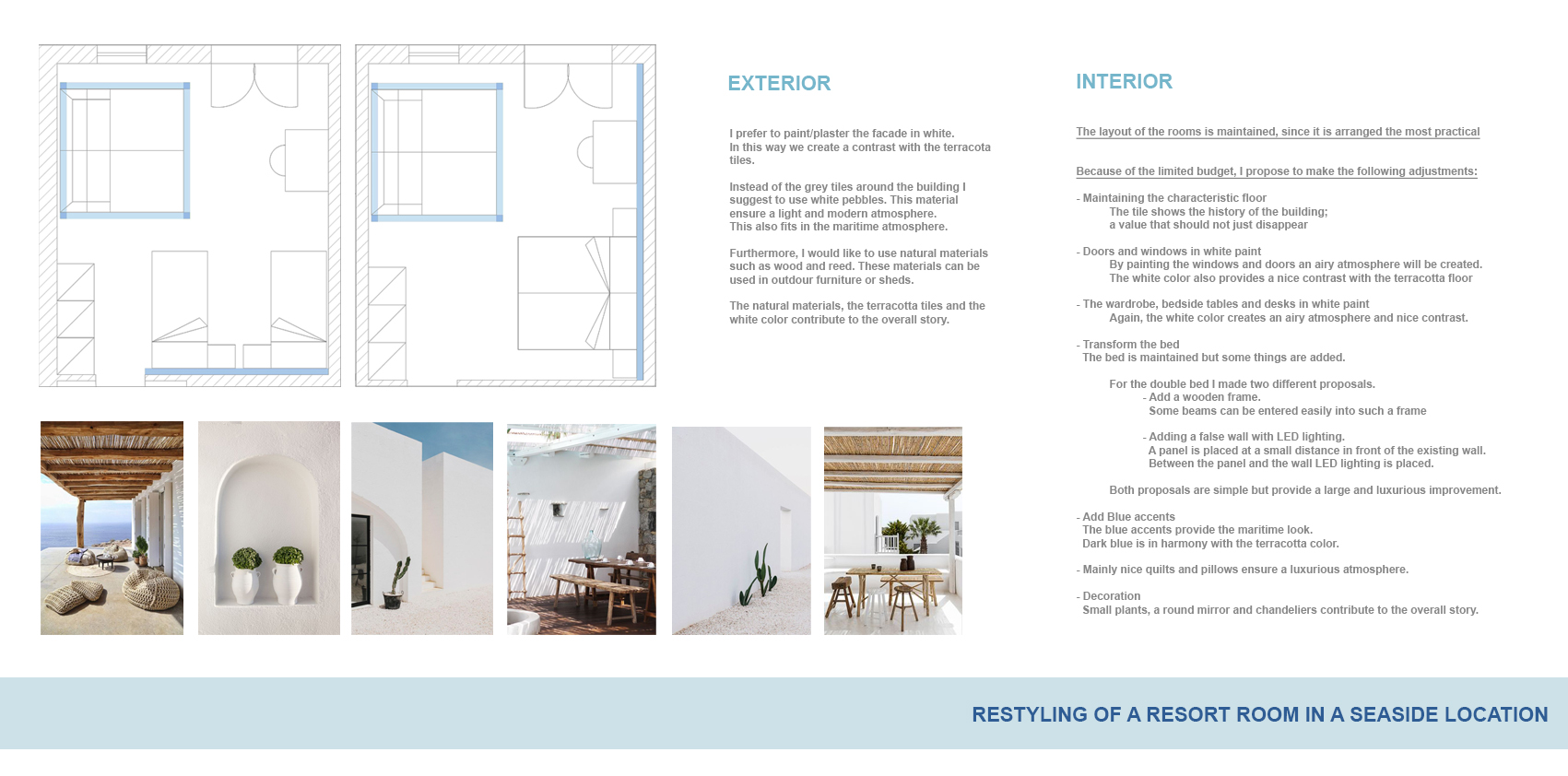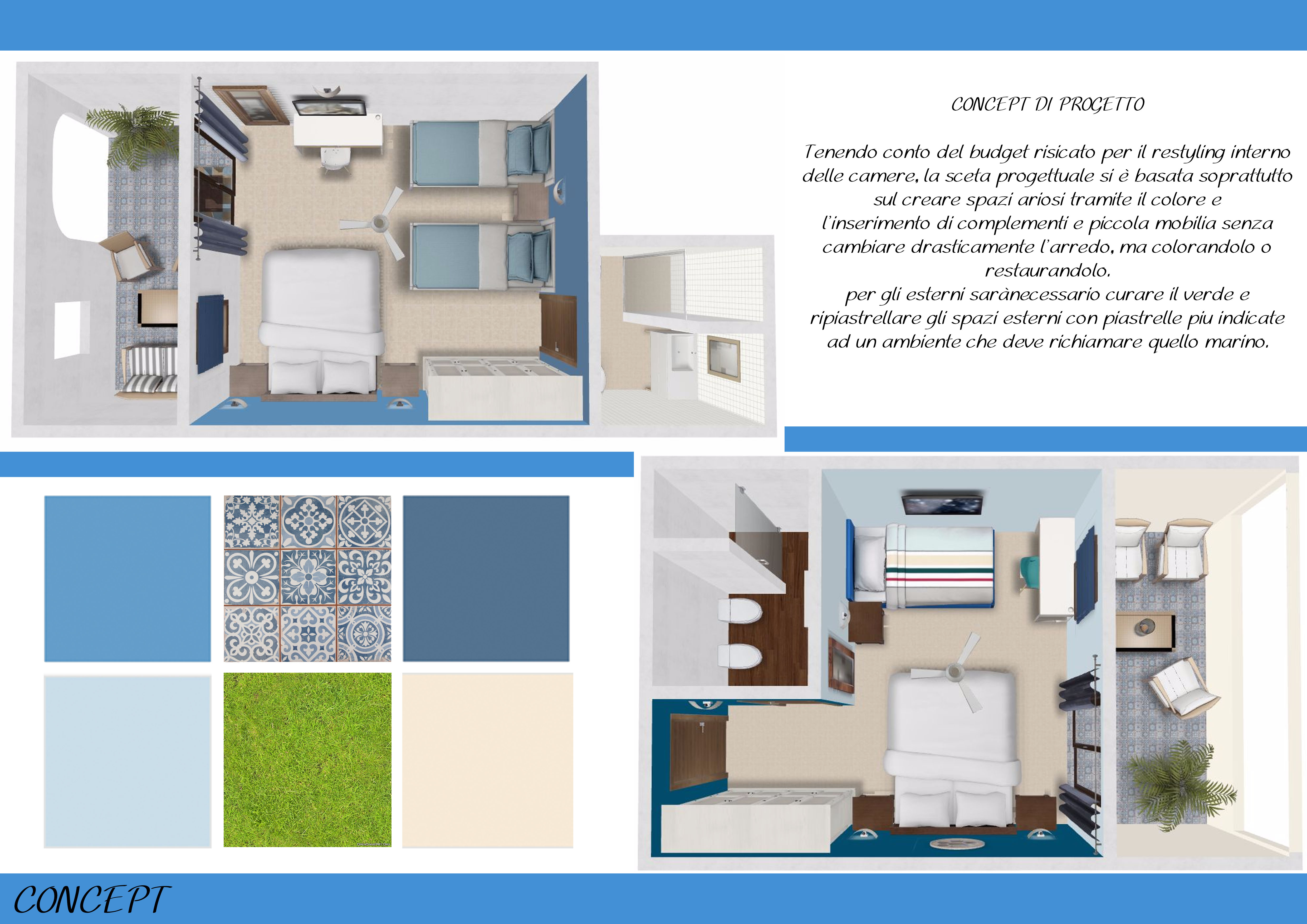 Il contest dovrà considerare il restyling del layout interno con un budget massimo di € 500 a camera nonché il restyling delle parti esterne (no budget prestabilito).