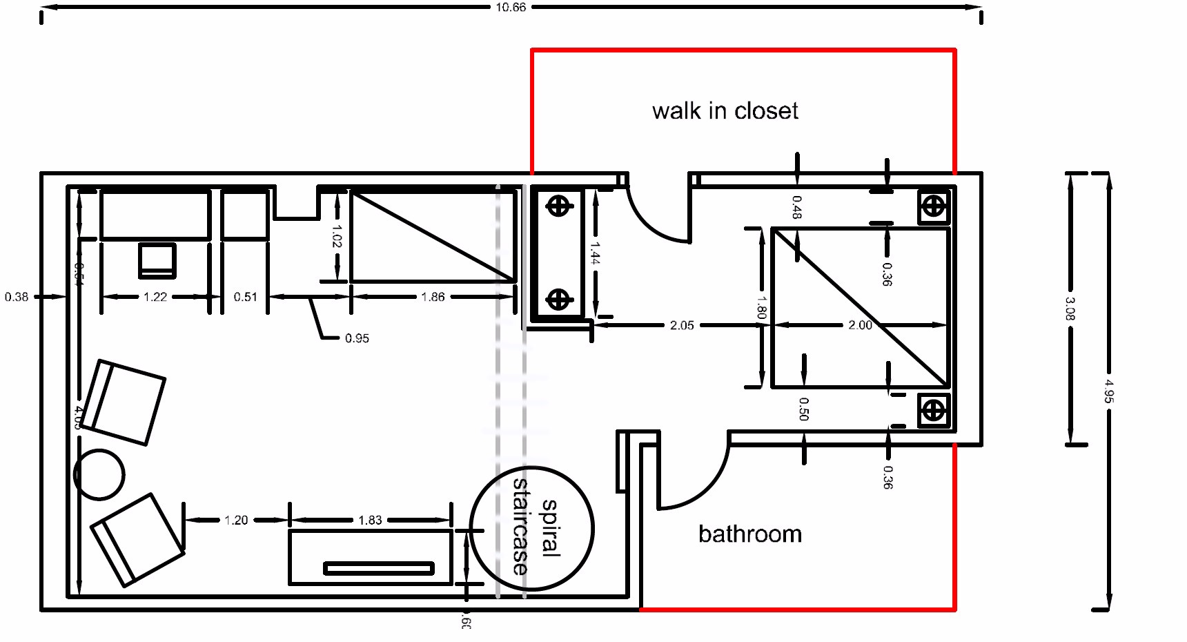 Currently the attic consists of a single room, where there is a relaxing area / living area, plus a walk-in closet and a bathroom.