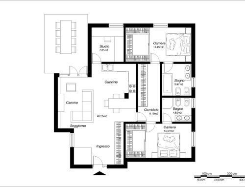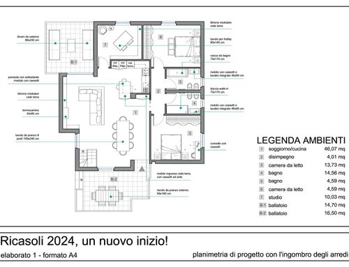 • Spostare cucina sul lato opposto