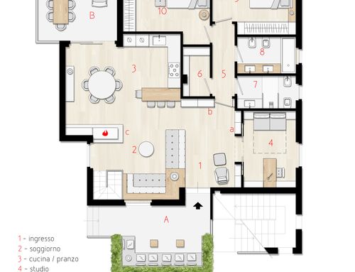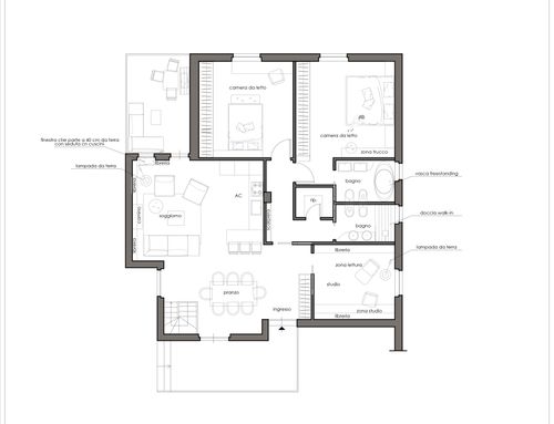 Hola, ciao siamo una giovane coppia che finalmente ha comprato una nuova casa nella provincia di Arezzo, valdarno aretino. L’abitazione è un appartamento al piano terra di una villetta bifamiliare con doppia esposizione solare, si sviluppa al piano terra e ha giardino di proprietà solo su di un lato, l’altro lato del giardino è di proprietà dell’altro appartamento. Abbiamo scelto questa abitazione per la posizione panoramica e gli affacci sul verde che offre. Siamo alle porte del chianti, in posizione collinare circa 250mt slm, la zona è tranquilla accediamo all’abitazione dal giardino frontale tramite un ballatoio che vorremo ampliare. L’appartamento è dotato di un altro terrazzino posto dalla parte opposta del giardino orientato a sud. La nostra idea è di ampliarlo e renderlo abitabile. L’obiettivo è ridistribuire gli spazi interni, che ad oggi non ci soddisfano. Ci piacerebbero: