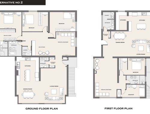 o 1) dos apartamentos arriba, uno de aproximadamente 90 m2 (incluida la terraza), el otro de aproximadamente 60 m2 (no incluía la pequeña terraza, que debería repensarse)