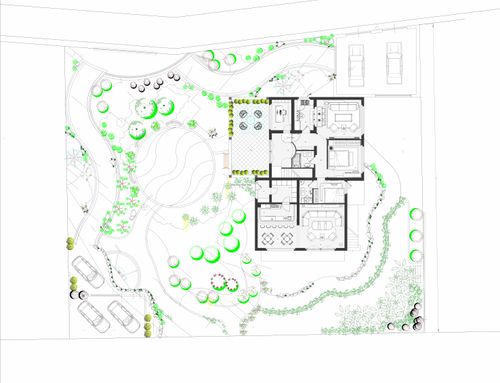• The granddaughter has three large dogs, so the majority of the garden goes to her. The uncle isn't interested in the garden, but I would like it to be foreseeable to separate the green areas in a hypothetical future (you never know if an outsider lives there)