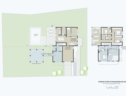o A) casa più grande: la nipote dovrebbe avere cucina + sala (non necessariamente separati), con affaccio sul bel giardino 3 stanze da letto e due bagni, in taverna almeno uno spazio per la lavanderia, se poi ci stesse una doccia meglio