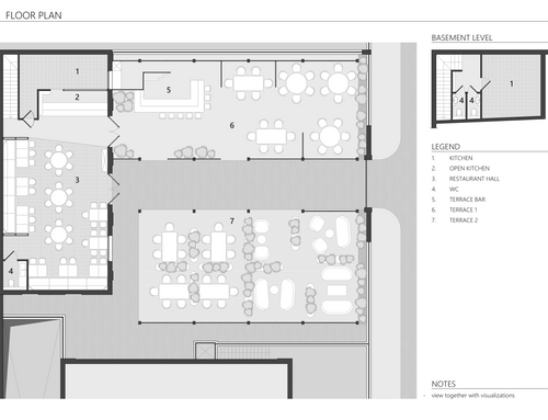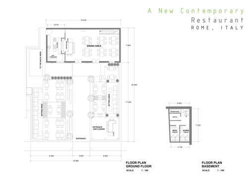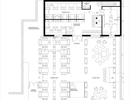 I would like the restaurant to have a modern design style but at the same time it is not cold. On the ground floor we will have to make an open kitchen that includes washing (which will be hidden) for a total of about 22 square meters. A bar counter of no more than 250 cm in length and no more than 200 cm deep. An area for the reception / cash desk, it is necessary that on the ground floor there is a disabled bathroom that actually is already present, but if necessary we could also move.