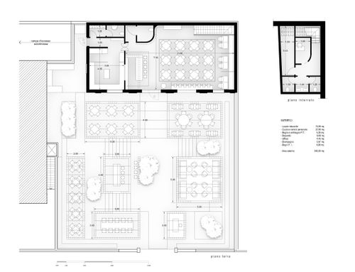 You have total power to propose roofing solutions (which must always be removable) of the external space according to the rules of the "pergotenda", you can propose both a total coverage of the courtyard and of the external space and a partial coverage. In the space shown in the last photo, therefore lateral to the building, it is expected the location of column refrigerators and an area for separate collection. All this involves the need for lateral access using one of the two walled passages present in the plan.