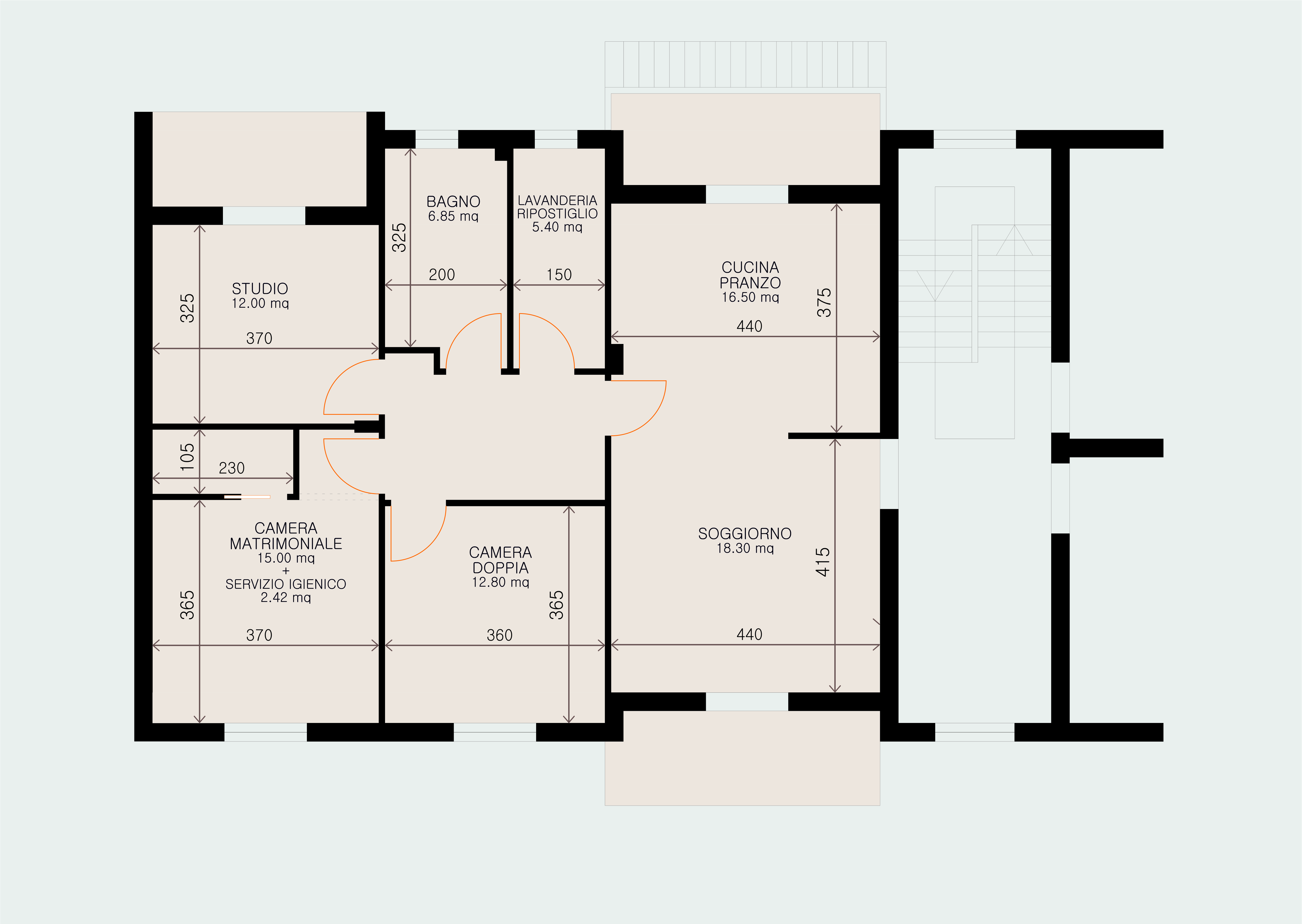 Quello che mi piacerebbe ottenere è un progetto che includa, se possibile 2 bagni e un ripostiglio , che una delle 3 stanze sia adibita a studio e sopratutto , avendo un salone cucina molto grosso, che ci sia una cucina living, ma che ci sia un qualcosa che faccia in modo tale che la cucina non sia per forza la prima cosa che si noti entrando in casa. Sarebbe bello poter avere un stufa a pellet.