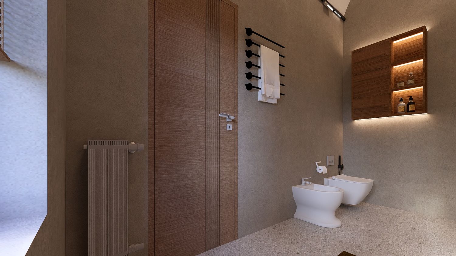 Il progetto propone un bagno completamente ripensato, con una distribuzione fluida e funzionale, resa possibile dalla libertà di riposizionare gli impianti.
