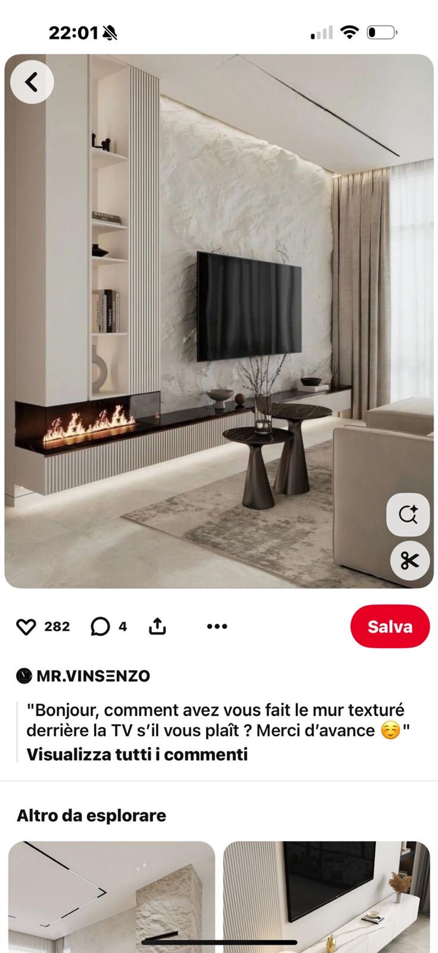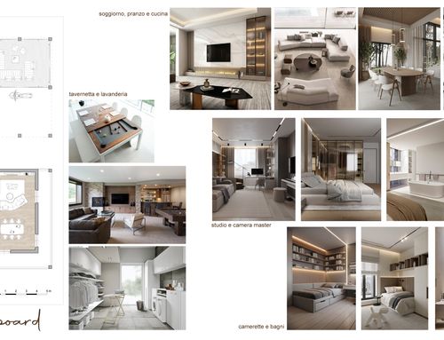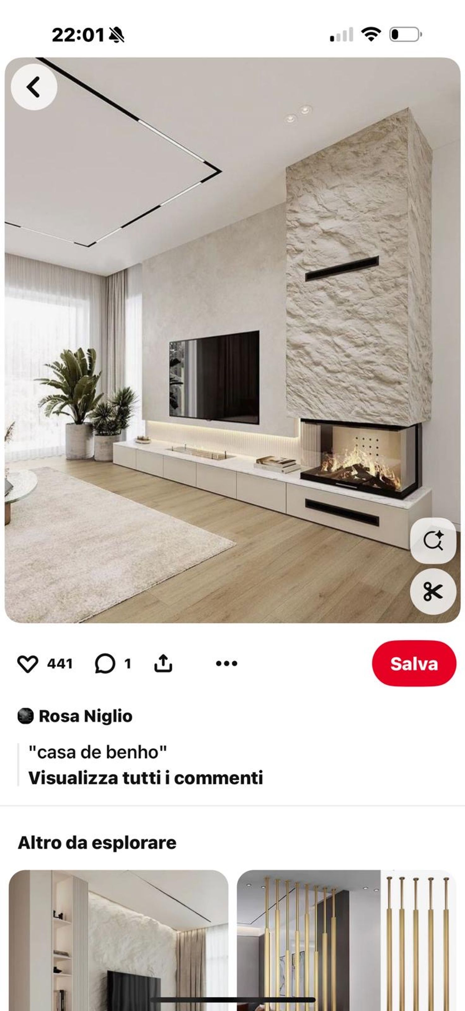 Lo stile che preferiamo è il moderno contemporaneo, toni del beige/legno con effetti marmo, vorremmo se possibile anche camino moderno in sala con eventualmente anche un effetto pietra su parete dietro la televisione.
