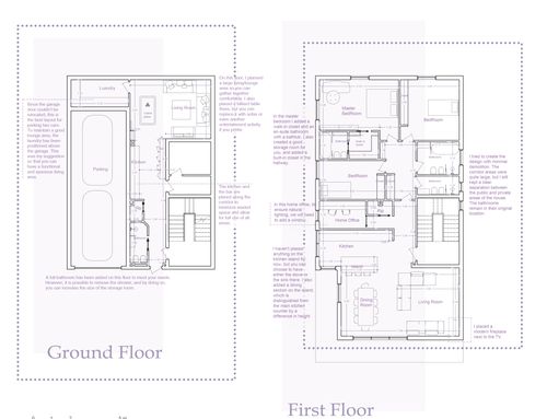 En la primera planta, nos gustaría tener una entrada con un espacio abierto de salón y cocina (con isla o península), un dormitorio principal con un bonito vestidor y, si es posible según las medidas, un baño o una bañera dentro del dormitorio. También quisiéramos 2 habitaciones para niños, un baño principal y un pequeño baño de servicio, ambos con ducha. Si el espacio lo permite, también nos gustaría incluir una oficina.