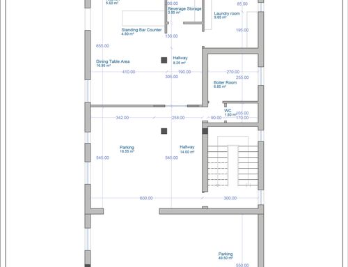 The ground floor is currently in a raw, unfinished state and needs a full renovation. Here, we would like to create a double garage, a tavern, and keep the existing laundry (which we could also make smaller).
