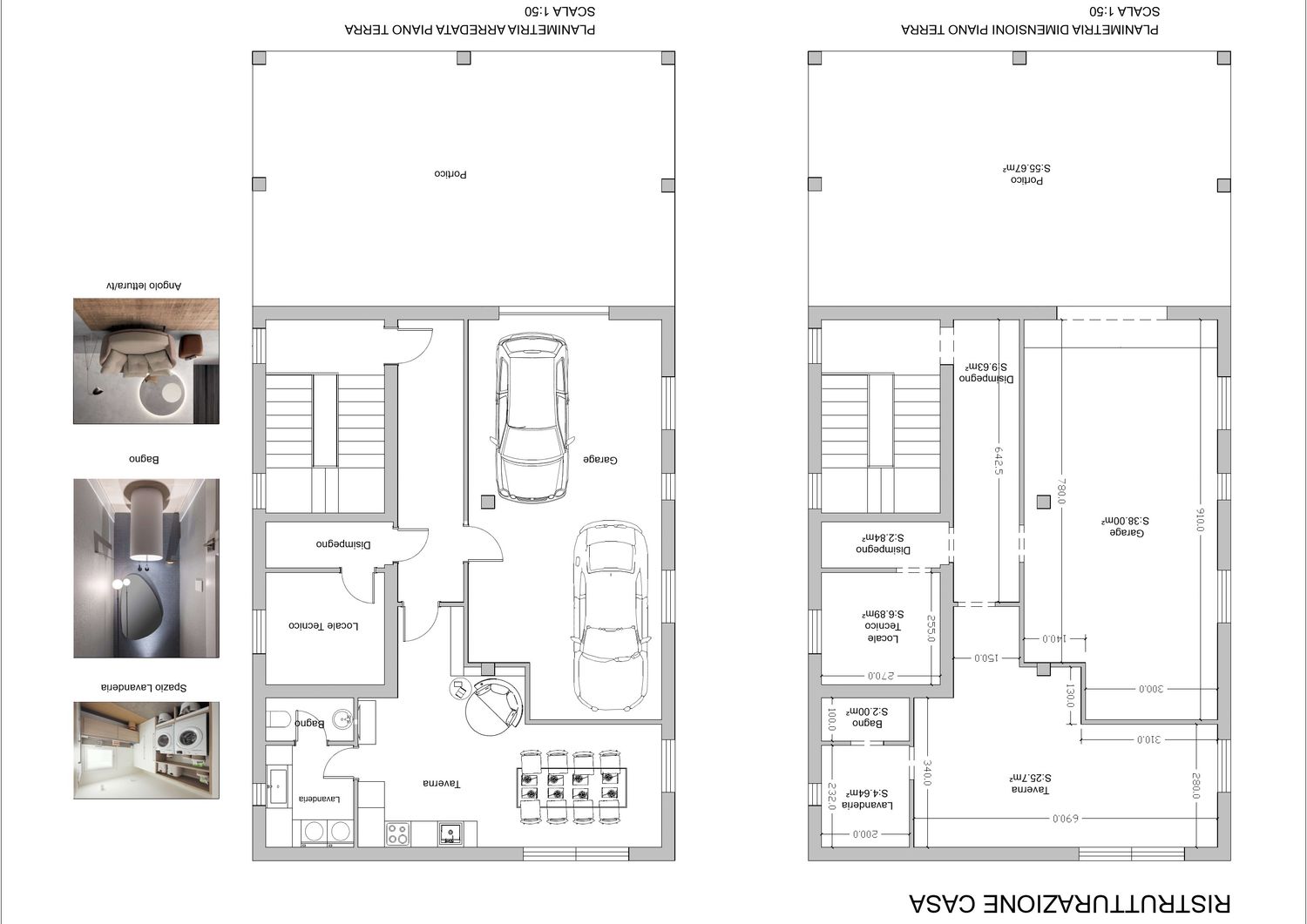 Al piano terra sono stati previsti due posti auto sfalsati; tuttavia, la presenza di un pilastro limita parzialmente la manovrabilità.