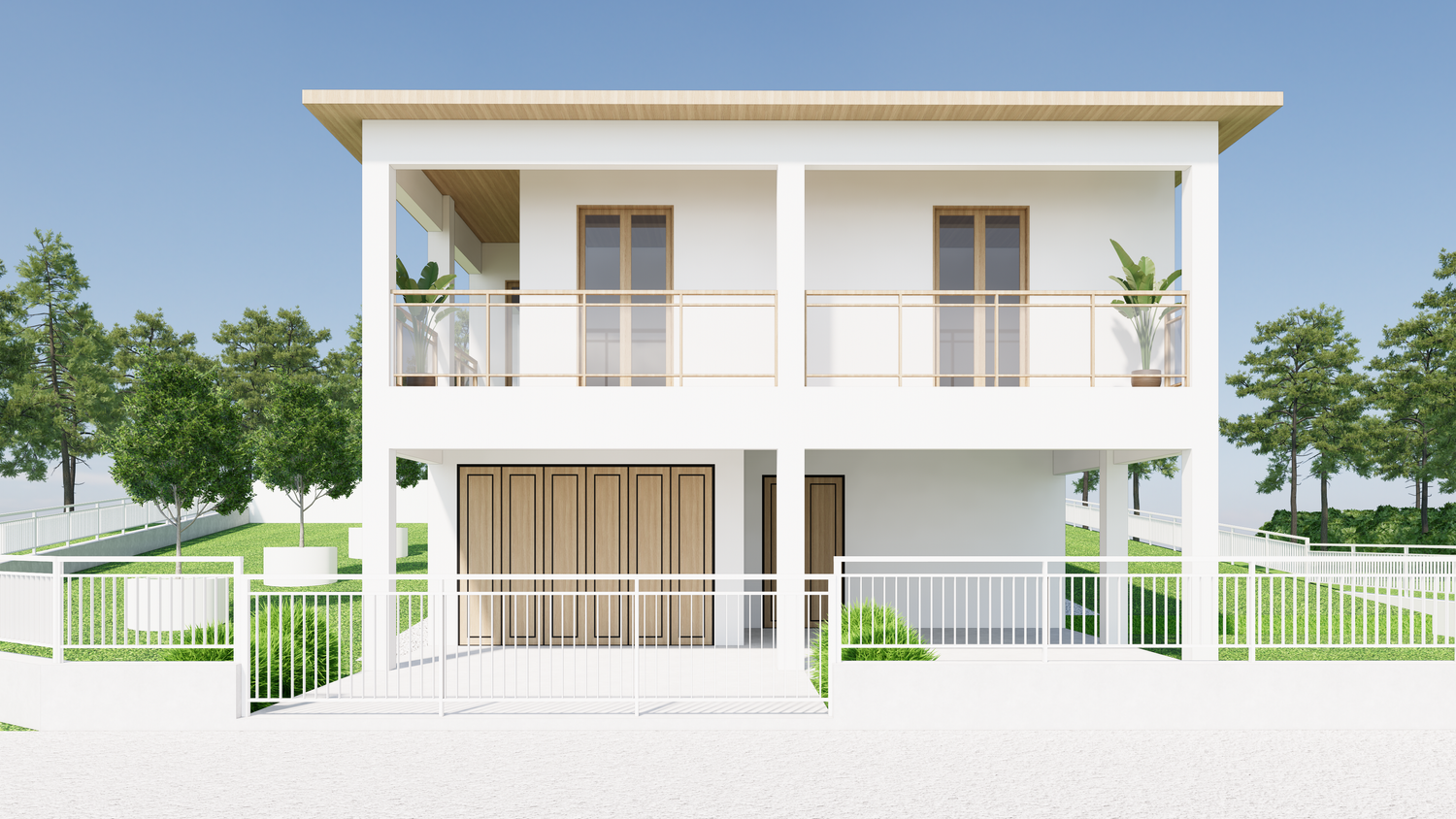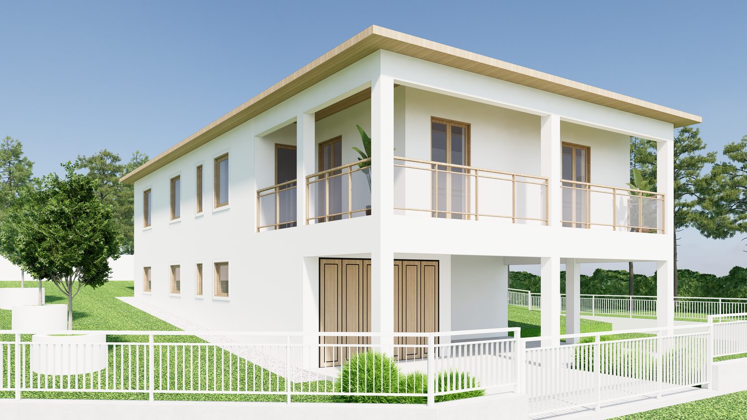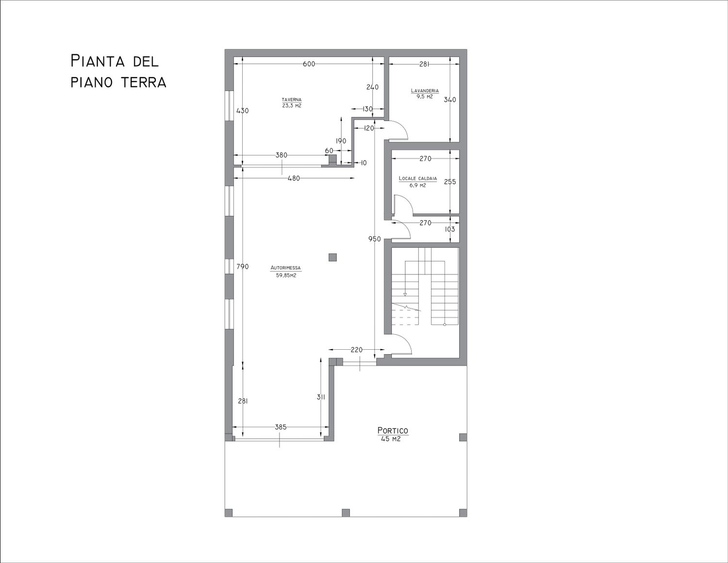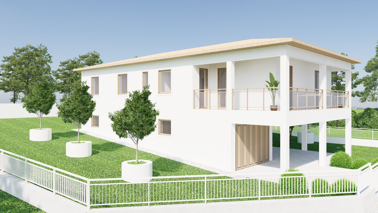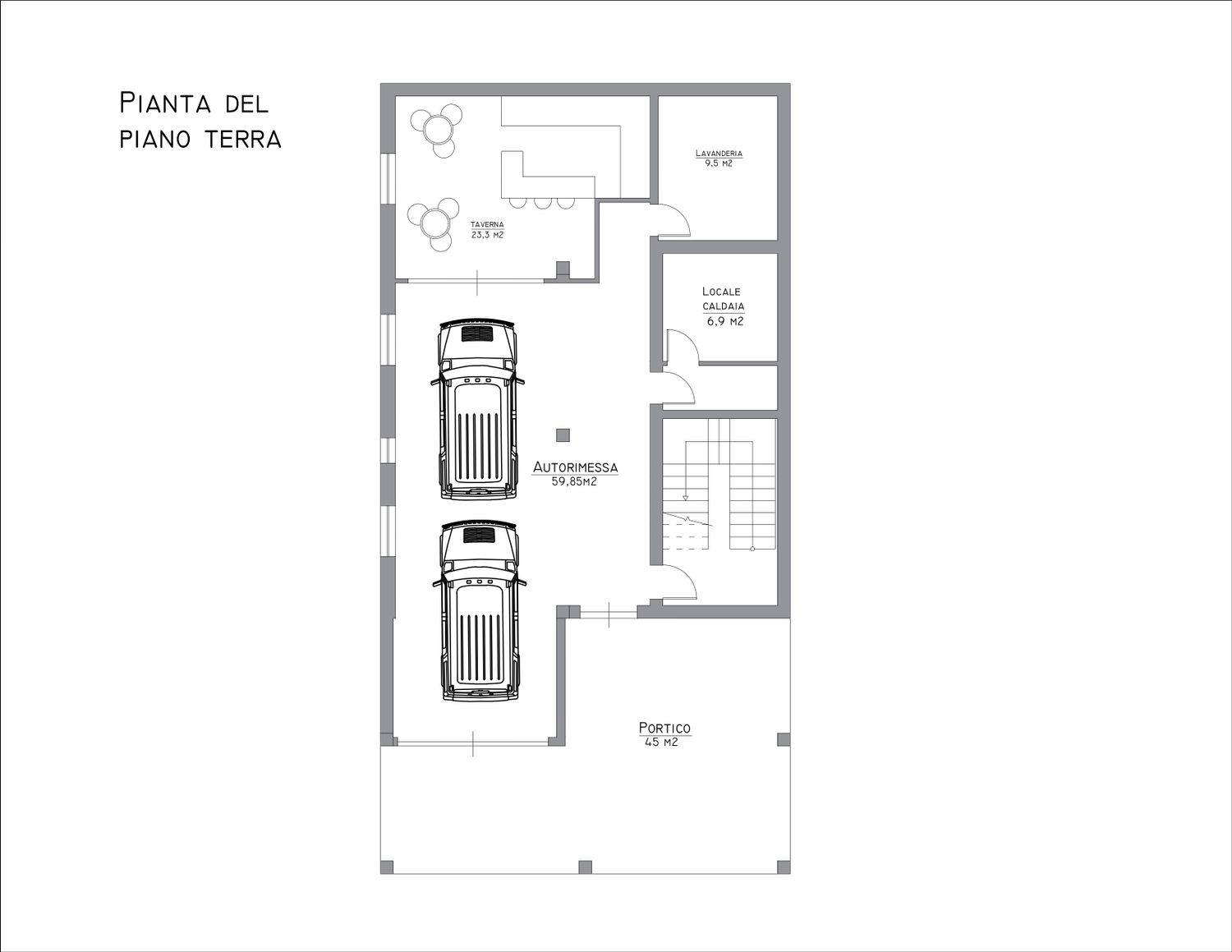 On the ground floor, you wanted a double garage. I initially planned on two garage doors, but after realizing that a column prevented me from building two doors, I decided to extend the garage wall to accommodate two cars. There's also a laundry room, which I reduced, and a bar.