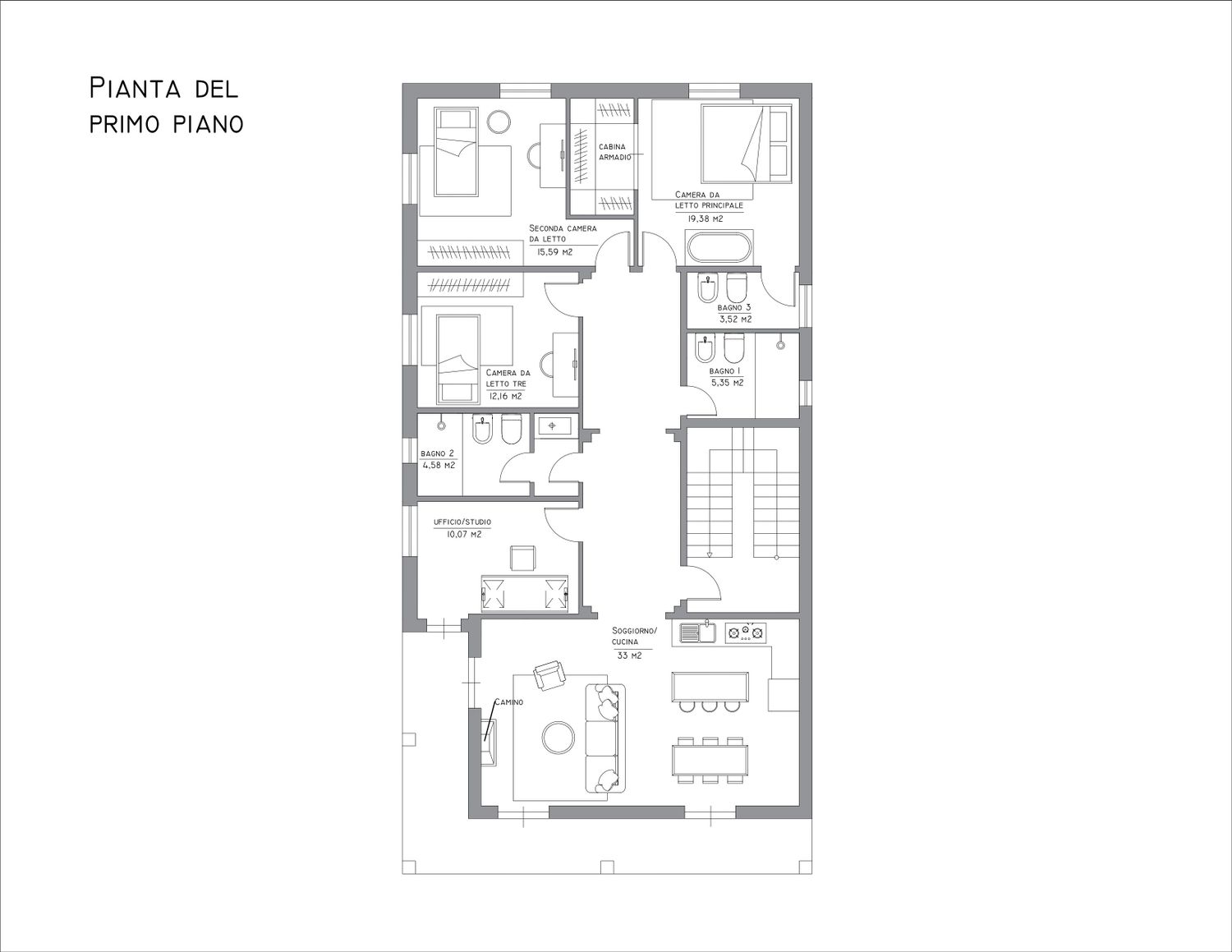 In addition, there are two other restrooms: the master restroom and a guest restroom with a sink, both with showers and toilets. I think placing the restrooms in these three areas was a smart move, keeping the renovation less complicated yet still effective. On the first floor, you can also see two children's rooms and an office/study.