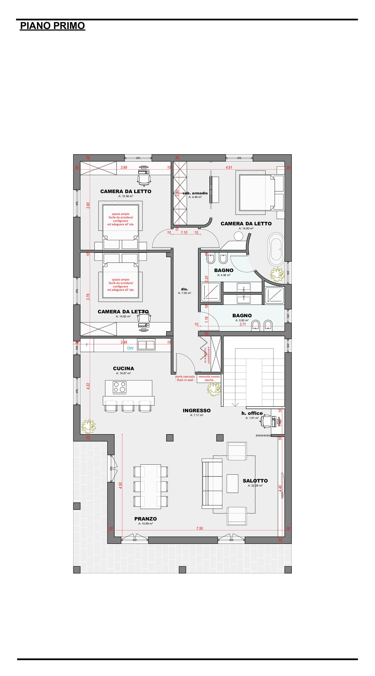 Il progetto recepisce integralmente le richieste espresse nel brief dei committenti, traducendole in una proposta distributiva e concettuale coerente con lo stile moderno–contemporaneo richiesto.