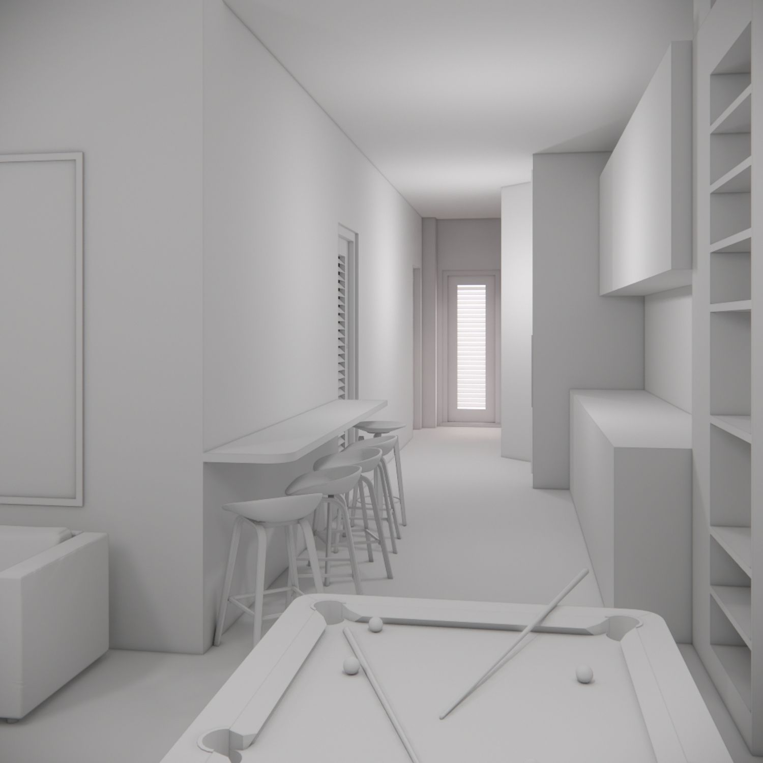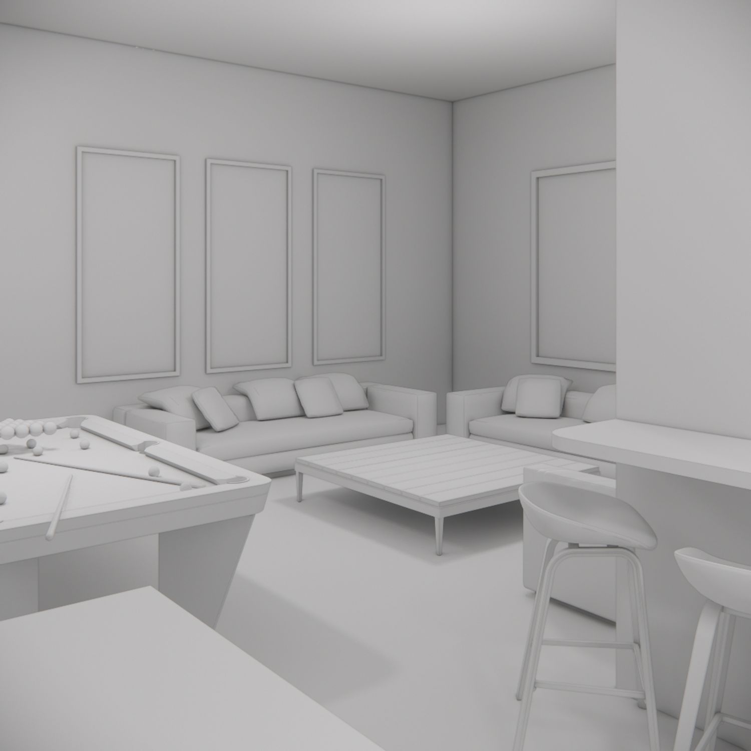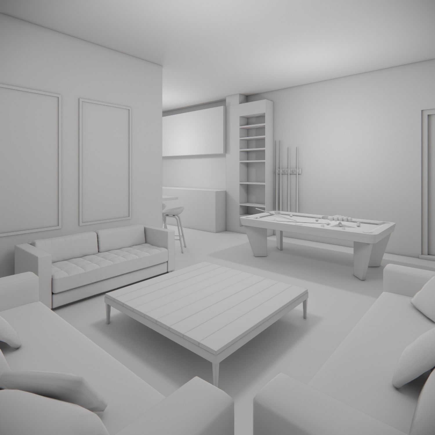 On this floor, I planned a large living/lounge area so you can gather together comfortably. I also placed a billiard table there, but you can replace it with sofas or even another entertainment activity if you prefer.