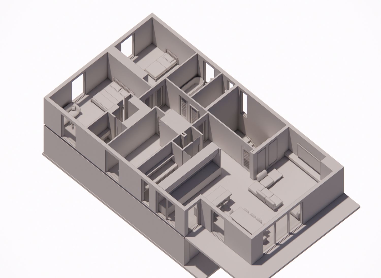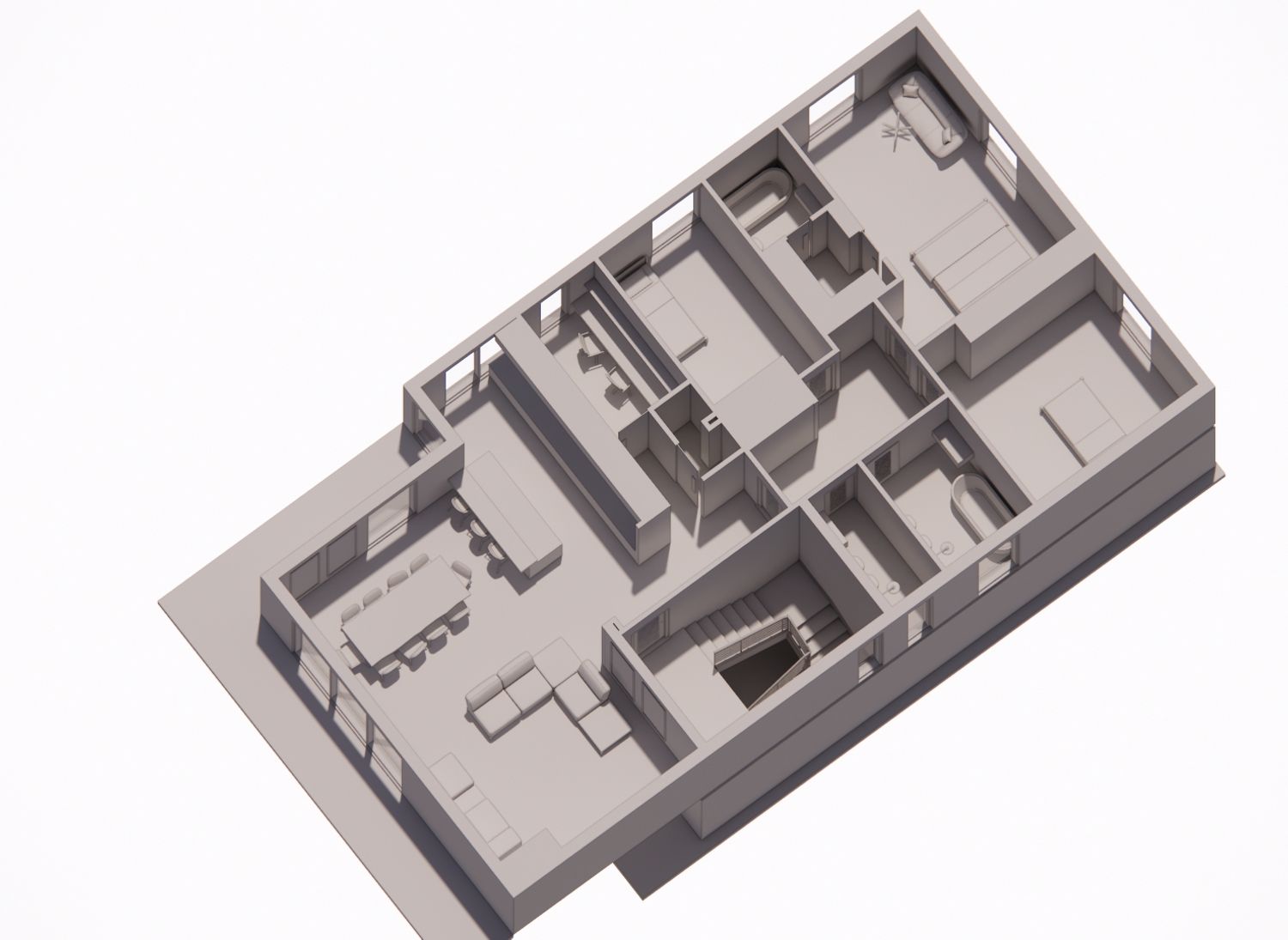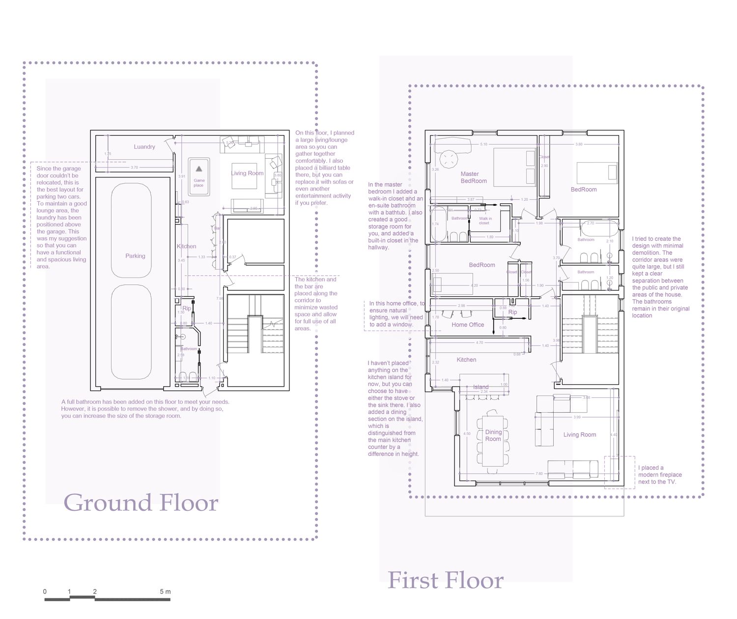 I tried to create the design with minimal demolition. The corridor areas were quite large, but I still kept a clear separation between the public and private areas of the house. The bathrooms remain in their original locations, and in the master bedroom I added a walk-in closet and an en-suite bathroom with a bathtub. I also created a good storage room for you, and added a built-in closet in the hallway.