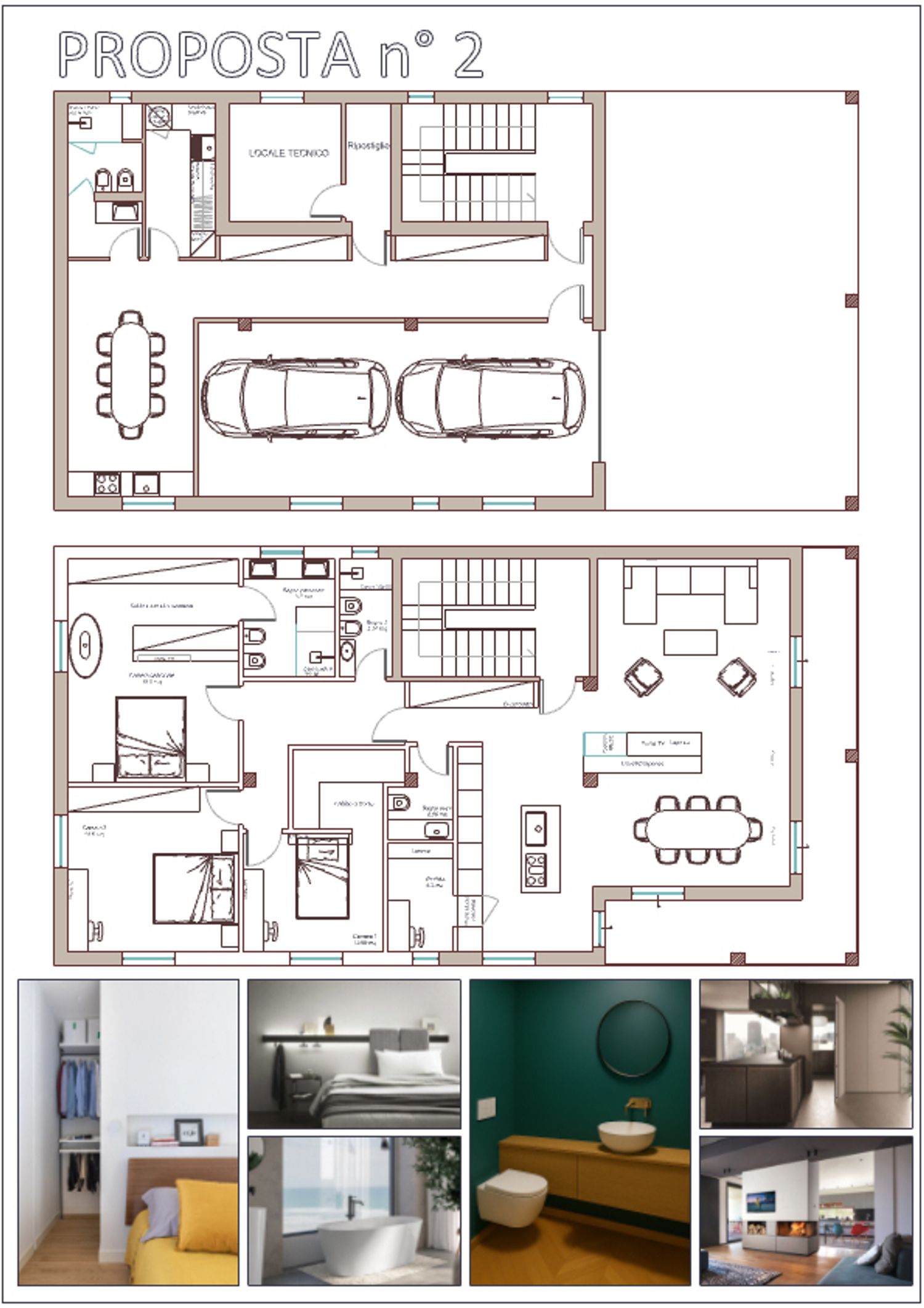 Nella prima proposta, qualora le condizioni tecniche e urbanistiche lo consentano e la soluzione risulti di vostro gradimento, è prevista la realizzazione di un nuovo box indipendente, al fine di liberare maggiore superficie da destinare alla taverna.