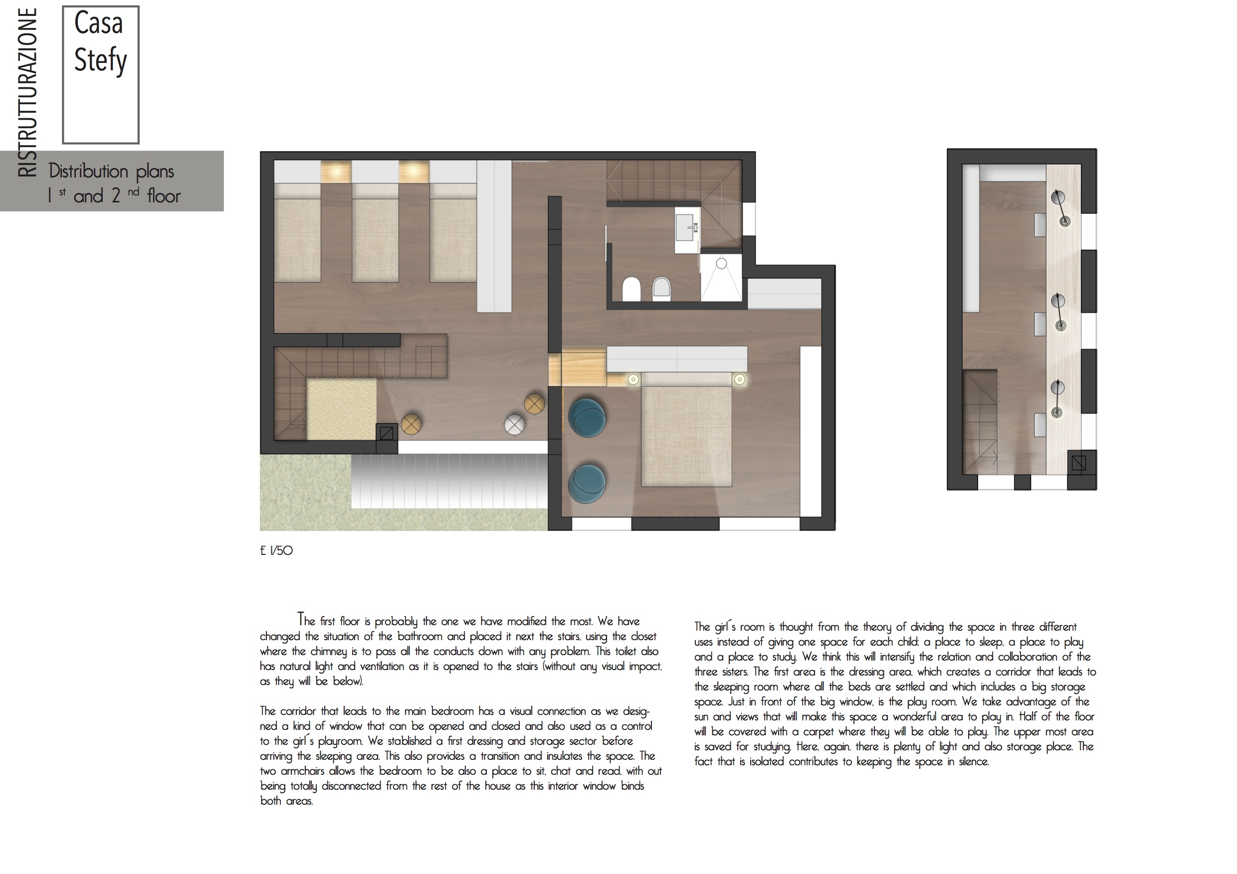 Potremmo spostare 2 bambine nella stanza grande e la terza andrebbe nella stanza di sopra, facendo il tutto comunicante, mentre io e mia moglie ci sposteremmo nella stanza più piccola.