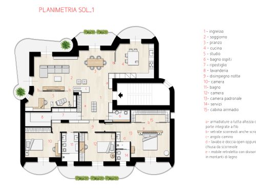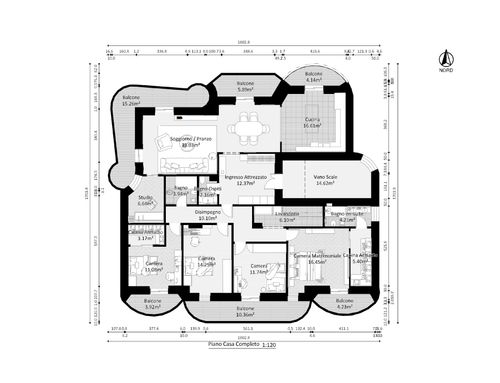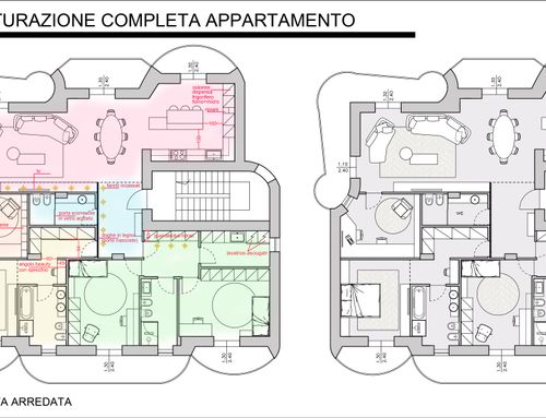 Salve abbiamo questo appartamento, vorremmo cambiare la disposizione interna rendendola più moderna l'appartamento dovrà avere 3 camere da letto, soggiorno con cucina a vista o al limite separata parzialmente per favorire la convivialità, uno studio e tre bagni tra cui quello ospiti, uno ensuite per la padronale con possibilmente cabina armadio, ed uno a servizio delle altre due camere da letto, per finire uno spazio lavanderia. non abbiamo preferenze di stile.