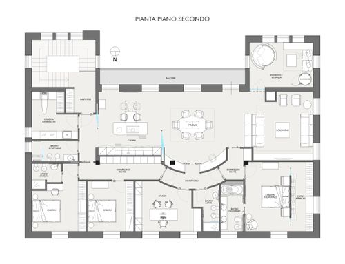 Nei prossimi mesi avvieremo la ristrutturazione completa di un grande appartamento dall'unione di due attuali singoli appartamenti adiacenti situati al 2° piano di un immobile nel centro storico di Cittadella, cittadina medievale. Gli allegati 1 e 2 mostrano l'immobile da Nord (2° piano con 6 finestre) e da Sud con l'ingresso con il cancello. Si tratta dell'intero secondo (ultimo) piano il cui accesso avviene da due "torrette" poste sul lato Sud dell'immobile, l'una verso Ovest e l'altra verso Est. Le due torrette sono di proprietà esclusiva, è nostra intenzione rendere quella a SO l'ingresso principale e eliminare le attuali scale per costruire un ascensore (nell'angolo a sinistra NO, lasciando nella torretta a SE le attuali scale. Torretta SO: immaginiamo di creare una stanza al 1° piano da poter adibire a palestra; per il 2° piano che gode di una bella vista sulle mura ci piacerebbe costruire una stanza da adibire a ingresso/veranda. le attuali vetrate del 1° e 2° piano di questa torretta vorremmo "riaprirle" per dare ulteriore luce all'immobile. Torretta SE: al piano terra ci piacerebbe un piccolo bagno di servizio per la porzione di giardino esclusivo; al 2° piano ampliare la metratura del ballatoio per avere un ingresso più ampio. La nostra idea di massima è posizionare le camere sul lato Nord e l ampia zona giorno sul lato Sud che beneficia del balcone, con la cucina verso SE e il soggiorno verso SO. Nell'ingresso a SE posizioneremmo la lavanderia/stireria/bagno di servizio. Le camere: 3 camere ampie di cui una con bagno interno e cabina/stanza armadio interna; una con bagno interno; una terza camera. Nell'angolo a NO ci piacerebbe una zona giorno/studio. Necessitiamo inoltre di un altro studio, di un ulteriore bagno nella zona giorno (per ospiti); di stanze disbrigo/ripostiglio. Riscaldamento a pavimento. Lo stile: in armonia con il contesto ma moderno e dai colori chiari; pavimenti: veneziana chiara; preferenza a mobili chiusi, desideriamo infatti che siano progettati gli armadi (zona notte, stanza armadi, lavanderia, ripostigli, etc) per garantire ordine, praticità e spazio all'appartamento; le idee per l'arredamento possono trarre spunto da attuali pezzi che desideriamo inserire (Tavolo Sarpi di Scarpa; Madia bianco lucido di Cappellini; Maralonga in pelle marrone di Cassina; Lampadari Venini).