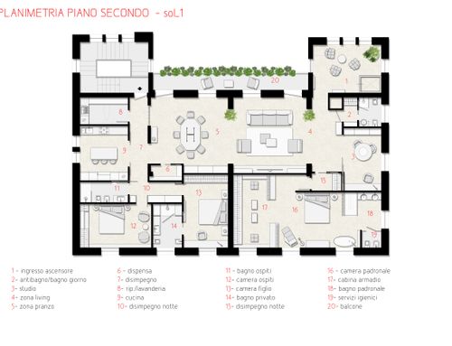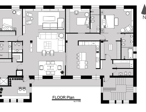 En los próximos meses comenzaremos la renovación completa de un gran apartamento a partir de la unión de dos apartamentos individuales adyacentes actuales ubicados en el segundo piso de un edificio en el centro histórico de Cittadella, una ciudad medieval. Los Anexos 1 y 2 muestran la propiedad desde el Norte (2do piso con 6 ventanas) y desde el Sur con la entrada con la puerta. Este es todo el segundo piso (superior) al que se accede por dos "torretas" ubicadas en el lado sur del edificio, una hacia el oeste y la otra hacia el este. Las dos torretas son de propiedad exclusiva, es nuestra intención hacer que la del SW sea la entrada principal y eliminar las escaleras actuales para construir un ascensor (en la esquina izquierda NO, dejando las escaleras actuales en la torreta SE. Torreta SW: imagina crear una habitación en el 1er piso para ser utilizada como gimnasio; para el segundo piso, que disfruta de una hermosa vista de las paredes, nos gustaría construir una habitación para ser utilizada como entrada / terraza. Las ventanas actuales en el primer y segundo piso de esta torre nos gustaría "reabrir" para dar más luz a la Edificio. Torre SE: en la planta baja queremos un pequeño baño de servicio para la porción del jardín exclusivo; en el 2do piso queremos ampliar el tamaño del balcón para tener una entrada más amplia. Nuestra idea general es ubicar las habitaciones en el lado norte y la gran sala de estar en l Lado sur que se beneficia del balcón, con la cocina hacia el SE y el salón hacia el SO. En la entrada SE colocaríamos la lavandería / cuarto de planchado / baño de servicio. Los dormitorios: 3 amplios dormitorios, uno con baño en suite y vestidor interno; uno con baño en suite; un tercer dormitorio. En la esquina NW nos gustaría una sala de estar / estudio. También necesitamos otro estudio, un baño adicional en la sala de estar (para invitados); de salas de procesamiento / almacenamiento. Calefacción por suelo radiante. El estilo: en armonía con el contexto pero moderno y con colores claros; suelos: veneciano claro; preferencia a los muebles cerrados, de hecho queremos que los armarios (zona de dormitorio, armario, lavadero, armarios, etc.) estén diseñados para garantizar el orden, la practicidad y el espacio en el apartamento; Las ideas de decoración pueden inspirarse en piezas actuales que queramos incluir (mesa Sarpi de Scarpa; aparador blanco brillo de Cappellini; Maralonga en cuero marrón de Cassina; candelabros Venini).