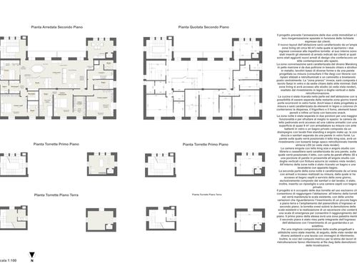 In the coming months we will start the complete renovation of a large apartment from the union of two current single adjacent apartments located on the 2nd floor of a building in the historic center of Cittadella, a medieval town. Annexes 1 and 2 show the property from the North (2nd floor with 6 windows) and from the South with the entrance with the gate. This is the entire second (top) floor which is accessed by two "turrets" located on the south side of the building, one towards the west and the other towards the east. The two turrets are the exclusive property, it is our intention make the one to the SW the main entrance and eliminate the current stairs to build an elevator (in the left corner NO, leaving the current stairs in the SE turret. SW turret: imagine creating a room on the 1st floor to be used as a gym; for the 2nd floor which enjoys a beautiful view of the walls we would like to build a room to be used as an entrance / veranda. the current windows on the 1st and 2nd floor of this tower we would like to "reopen" them to give further light to the building. Tower SE: on the ground floor we would like a small service bathroom for the portion of the exclusive garden; on the 2nd floor we would like to extend the size of the balcony to have a wider entrance. Our general idea is to place the rooms on the north side and the large living area on l South side which benefits from the balcony, with the kitchen towards the SE and the living room towards the SW. In the SE entrance we would position the laundry / ironing room / service bathroom. The bedrooms: 3 large bedrooms, one with en suite bathroom and internal walk-in closet; one with en suite bathroom; a third bedroom. In the NW corner we would like a living / study area. We also need another study, an additional bathroom in the living area (for guests); of processing / storage rooms. Underfloor heating. The style: in harmony with the context but modern and with light colors; floors: light Venetian; preference to closed furniture, in fact we want the wardrobes (sleeping area, wardrobe room, laundry room, closets, etc.) to be designed to ensure order, practicality and space in the apartment; ideas for furnishing can be inspired by current pieces that we want to include (Sarpi table by Scarpa; Cappellini's glossy white sideboard; Maralonga in brown leather by Cassina; Venini chandeliers).