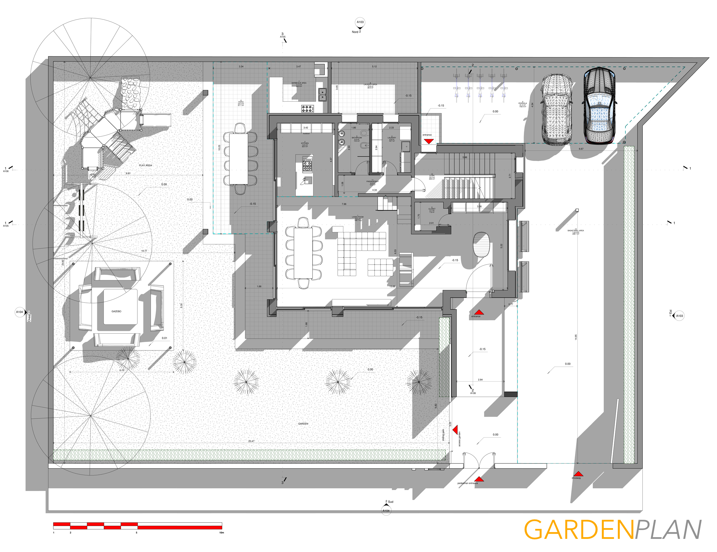- A beautiful garden, which allows children to play and also to organise parties with friends. It has to be arranged in a practical way, avoiding plants and situations that require maintenance.