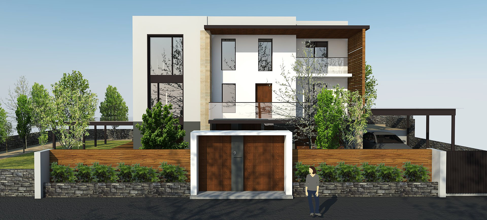We would like the main entrance to the ground in front, while the entrance of the exterior staircase needs to be on the side.