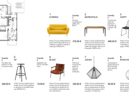 For the furniture, I would like to have a budget price proposal, not only Ikea, also décor inspired to famous designers are welcome if you can find them with a low-cost price