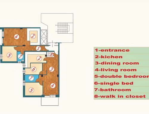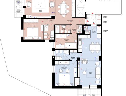 - normativa de construcción local: tamaño mínimo para salas de estar> 13 m 2, dormitorio principal> 12 m 2, otros dormitorios> 8 m 2, baño principal> 4 m 2, puerta de entrada al apartamento 0,90 m, otras puertas 0,80 m. el baño principal debe tener acceso desde pasillos y pasillos y no comunicarse directamente con otras habitaciones utilizadas para la estancia de personas