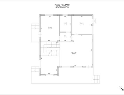 e) realizzare un bagno in camera nella stanza “O” da aggiungere a quello esistente. Abbattendo il solaio (senza toccare pilastri e travi), collegare con scala interna la stanza “O” agli ambienti “V” e “T”, per giocare sulle altezze e realizzare un ambiente su due piani.