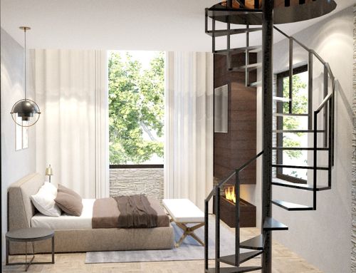 e) create an en-suite bathroom in room "O" to add to the existing one. By knocking down the attic (without touching pillars and beams), connect room “O” to rooms “V” and “T” with an internal staircase, to play on heights and create a two-story room.