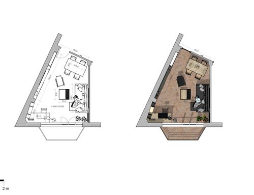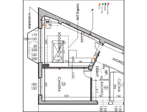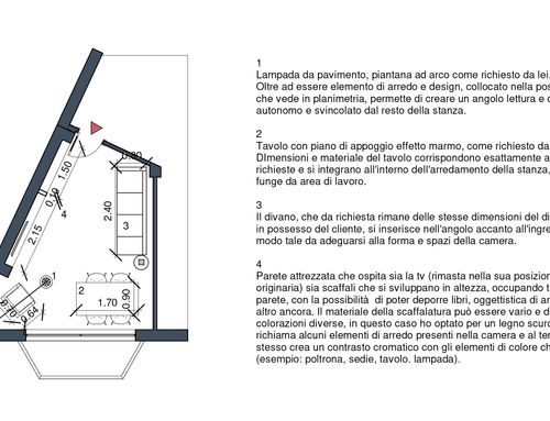 Inoltre, lavorando da casa sarebbe utile una postazione di lavoro; al momento sto utilizzando un tavolo 80x120, alto 105cm, questa altezza mi permette una comodità maggiore rispetto al tavolo "normale" di altezza 75cm quindi vorrei preservare un posto con queste caratteristiche, ma dato lo spazio non so se sia possibile prevederne una che sia differente da quella del tavolo principale.
