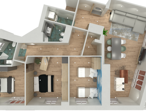 - Appartamento al terzo piano che necessita una ristrutturazione totale (incluso impianto elettrico, tubature, gas, serramenti). L'appartamento e' molto luminioso. Attualmente e' composto da tre camere, salotto, cucina e due bagni. Uno dei due bagni e' senza finestra. Il nostro stile si puo' definire scandi-minimal, atmosfera intima, dove i bianchi e grigi dominano, cosi' come pavimento in legno tranne nei bagni e cucina. L'appartamento ospitera' nonna, bimbi e coppia di adulti.