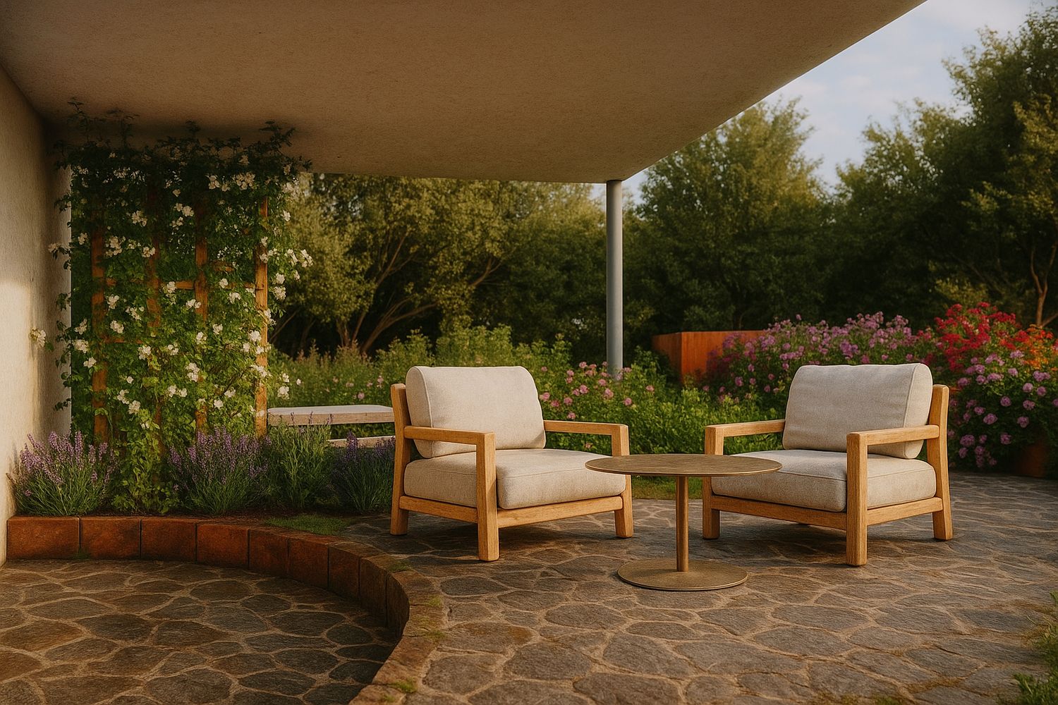 Il nuovo dislivello si estende oltre la linea esistente e si integra con il resto del giardino attraverso un andamento sinuoso.