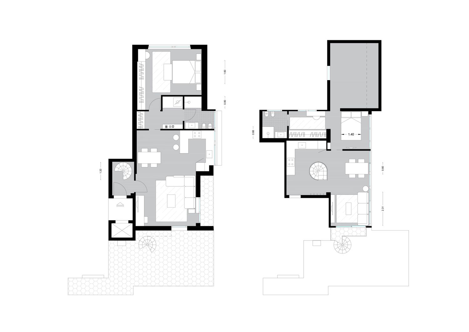 Allego esempi di scale poco ingombranti per l'interno oltre la classica a chiocciola che non è sempre la più comoda. Alla figlia ho inserito un letto da 140 cm, faccio presente che per averlo da 160 ec con due comodini dovrebbe essere posizionato contro la finestra. Comunque allego anche qui mia idea di finiture. La posizione dei bagni rimane la stessa, intervenire sugli scarichi ha sempre un costo, per la figlia non ho previsto spazio lavanderia dato che diceva che probabilmente avrebbe acquistato una porzione per tale scopo. Comunque sia per ora può trovare collocazione nella zona cucina. ciao